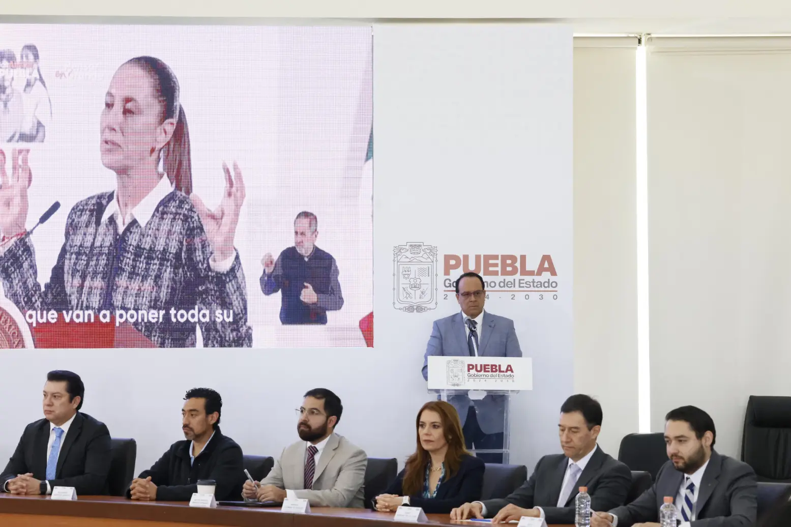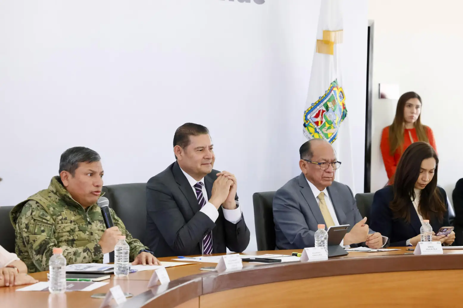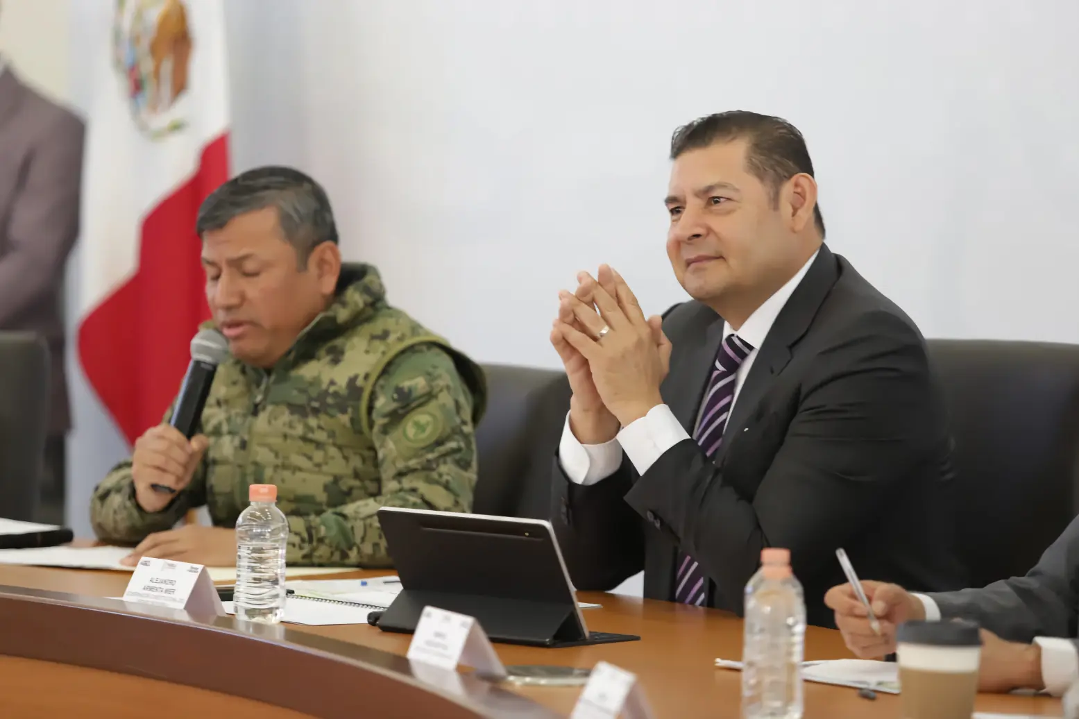 A la mañanera asistieron también el secretario de Gobernación, Samuel Aguilar Pala; el titular de la Secretaría de Seguridad Pública, el vicealmirante Francisco Sánchez González; el coordinador de Gabinete, José Luis García Parra; el secretario de Educación, Manuel Viveros Narciso; el titular de Infraestructura, José Manuel Contreras de los Santos y la subsecretaria de Desarrollo Tecnológico, Vinculación e Innovación en Puebla, Patricia Guzmán Velázquez.