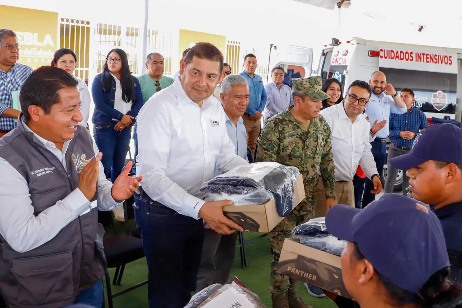 Asimismo, el titular del ejecutivo refirió que la seguridad es prioridad en el gobierno que encabeza, por ello dijo que se blindará todo el estado y seguirán trabajando con cada uno de los ayuntamientos para fortalecer la seguridad municipal y estatal. En este contexto, entregó uniformes y equipamiento para la Policía Municipal, así como una ambulancia de urgencias avanzadas.