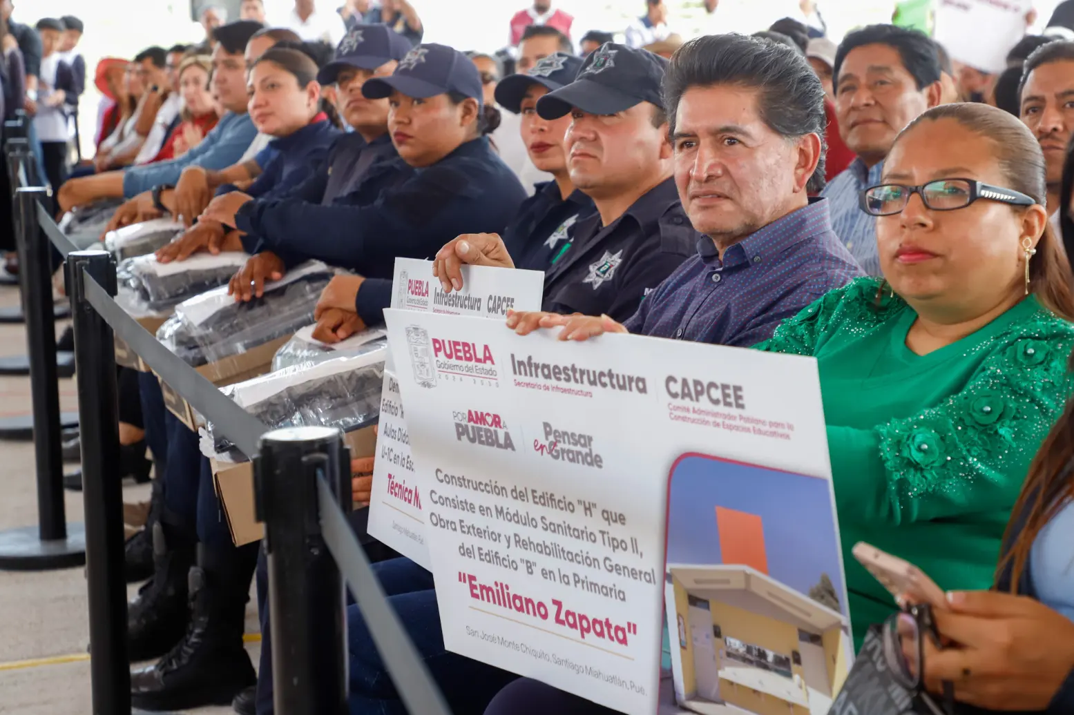 Al evento asistió el secretario de Gobernación, Samuel Aguilar Pala; el titular de Seguridad Pública, vicealmirante Francisco Sánchez González; la diputada federal, María del Rosario Orozco Caballero; las diputadas locales, Leonela Martínez Ayala y Araceli Celestino Rosas; el secretario de Infraestructura, Manuel Contreras de los Santos; el titular de Bienestar, Javier Aquino Limón; el secretario de Salud, Carlos Alberto Olivier Pacheco; la directora de SICOM, Natalie Hoyos López; el director general del CAPCEE, Carlos Ochoa Rodríguez; la directora de Obra Comunitaria del Estado, Alejandra de los Santos Reyes; la titular del Instituto Poblano de los Pueblos Indígenas, Apolinaria Martínez Arroyo; la presidenta del DIF Municipal, Berenice Vega Valerio; la directora del Telebachillerato, Dafne Evaristo Hernández y el párroco de la comunidad, Florencio Flores.