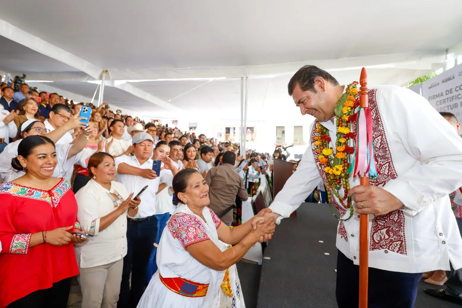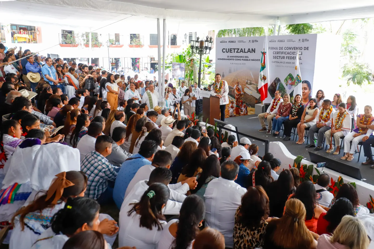 En el marco del 23 Aniversario del nombramiento de Cuetzalan como Pueblo Mágico, el titular del ejecutivo estatal reiteró que su administración mantiene estrecha coordinación con el Gobierno Federal, que encabeza la presidenta Claudia Sheinbaum. «Hoy la secretaria viene a firmar un gran convenio de promoción, pero no solo este municipio, porque tenemos 12 pueblos mágicos. Todo Puebla es mágica, llena de cultura, arte y tradiciones», afirmó.