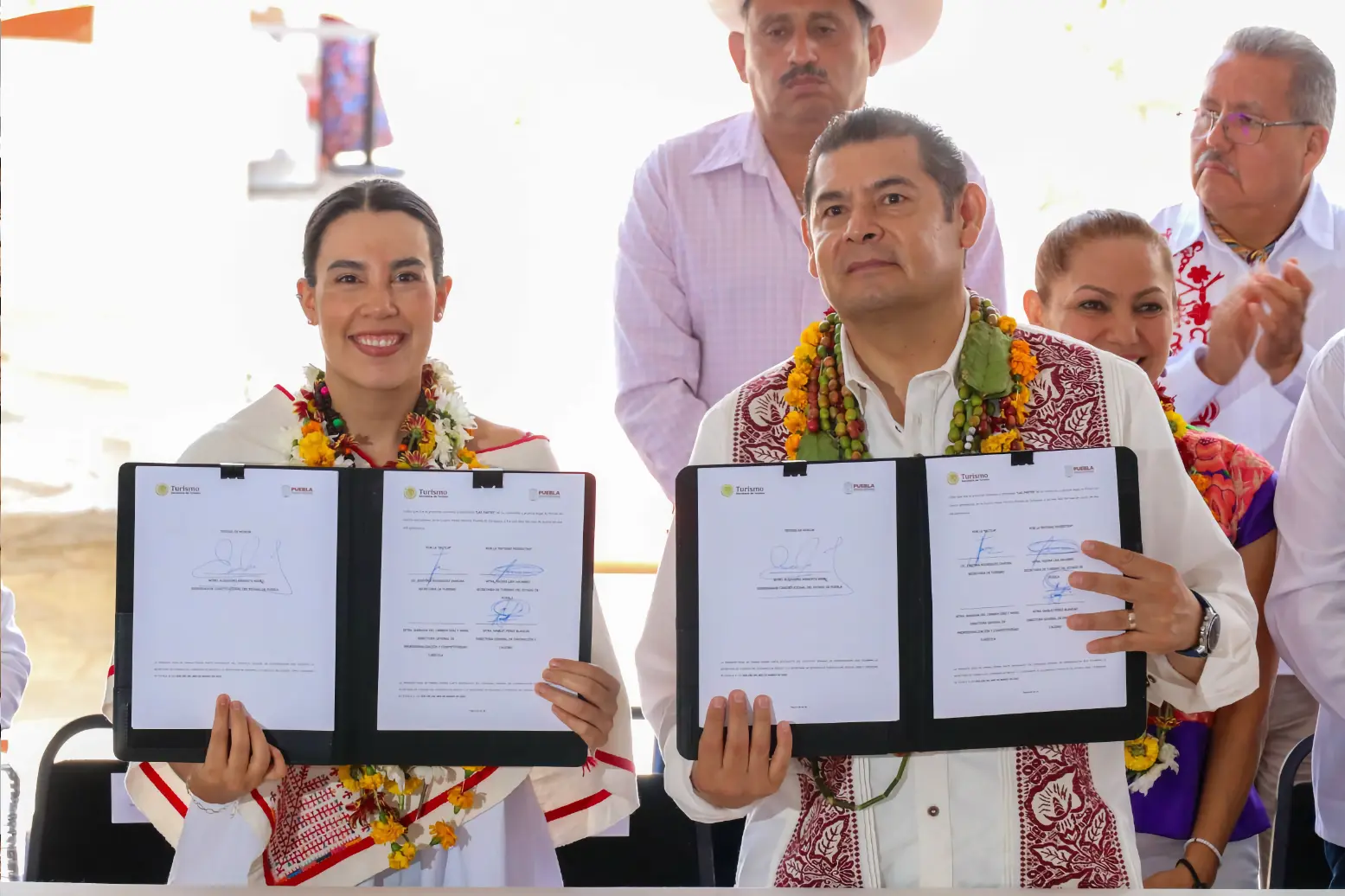 CUETZALAN DEL PROGRESO, Pue.- Con el objetivo de fortalecer el turismo comunitario en Puebla, el gobernador Alejandro Armenta y la secretaria de Turismo del Gobierno Federal, Josefina Rodríguez Zamora, signaron un convenio para promover el desarrollo equitativo en el estado y difundir la riqueza cultural, artística y turística.