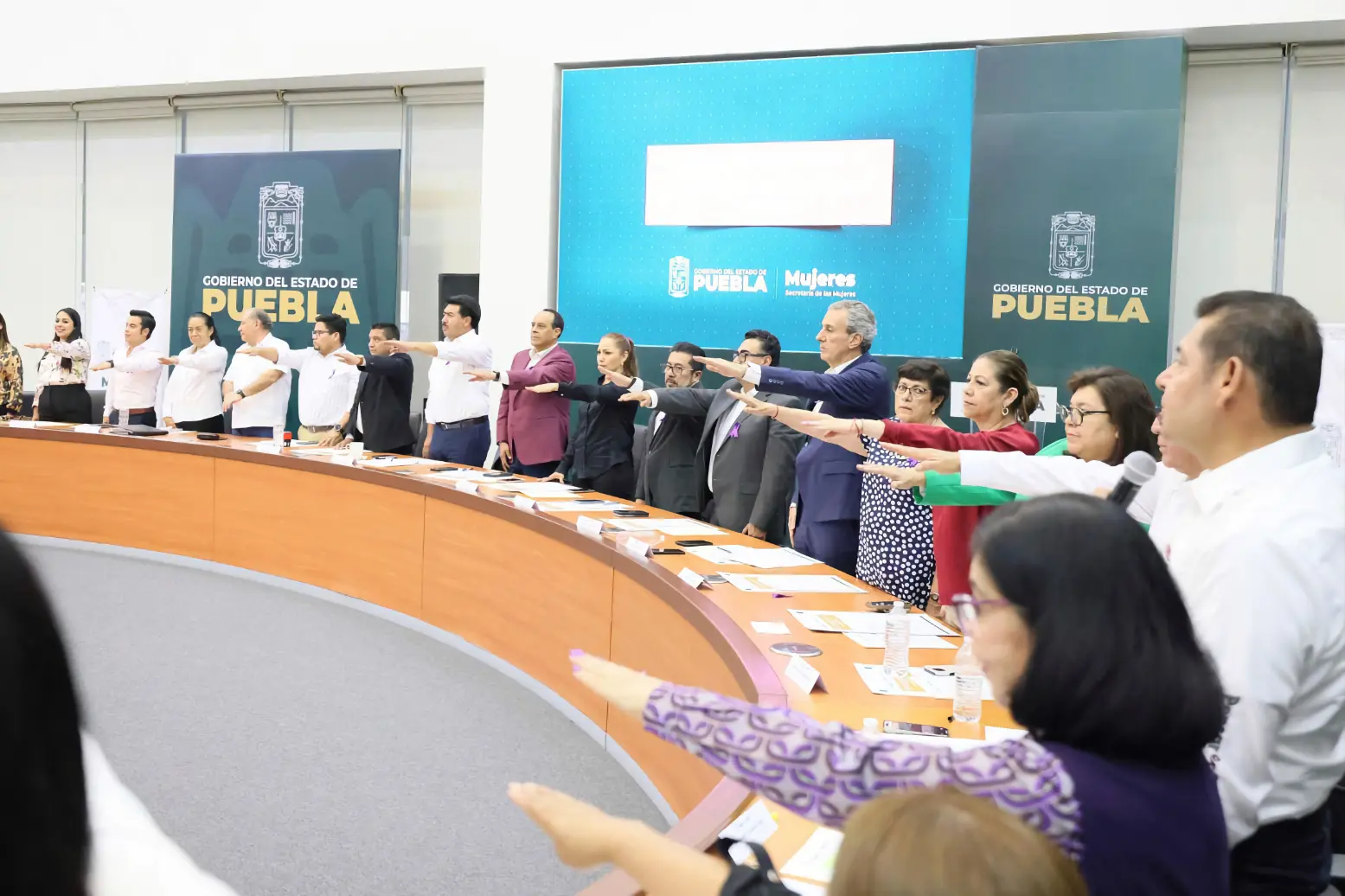 Las y los funcionarios estatales integrantes del gabinete rindieron protesta en las Unidades de Igualdad Sustantiva a cargo del gobernador y presidente Honorario del Sistema, Alejandro Armenta. Además, la secretaria de las Mujeres, Virginia González Melgarejo, formó parte de la instalación de las Células Especializadas de Búsqueda de Niñas, Adolescentes y Mujeres.