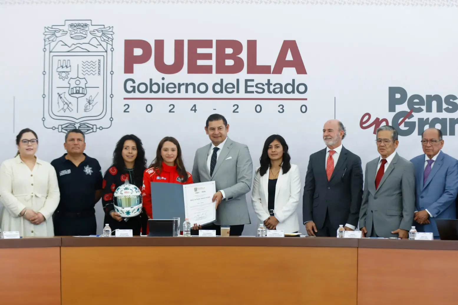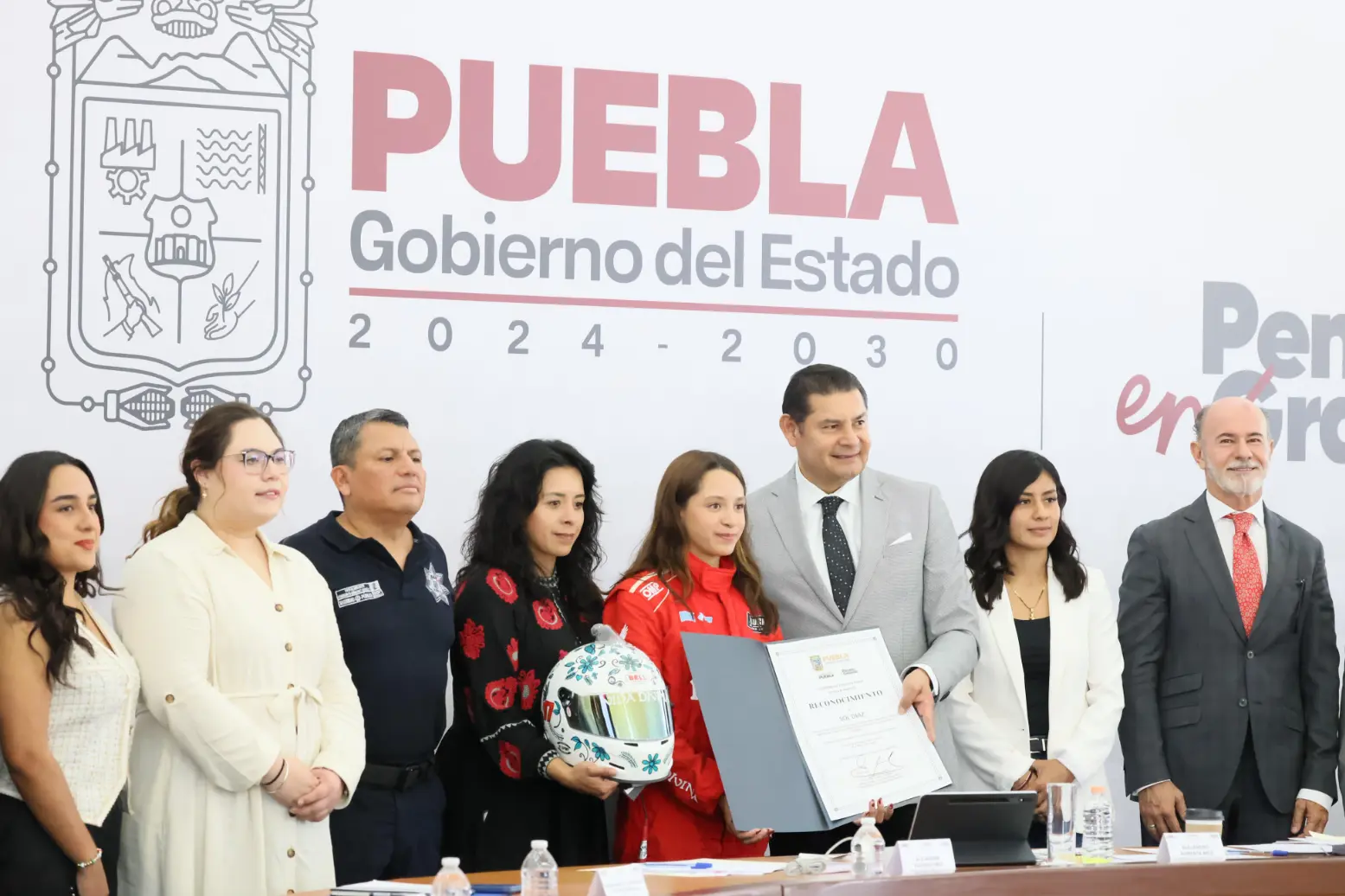 El mandatario añadió que es importante que las y los deportistas, artistas, atletas, poetas, artesanos y empresarios sean inspiración de las y los poblanos que piensan en grande porque aman a Puebla. Como Sol Díaz, quien ha acumulado múltiples triunfos desde los cinco años de edad, y hoy es considerada una promesa nacional del automovilismo. “Hoy, Sol, te reconocemos, te apreciamos, te queremos institucionalmente, te apoyamos. Tú eres un referente con tu equipo y todos desde el gobierno te vamos a apoyar, te vamos a impulsar”.
