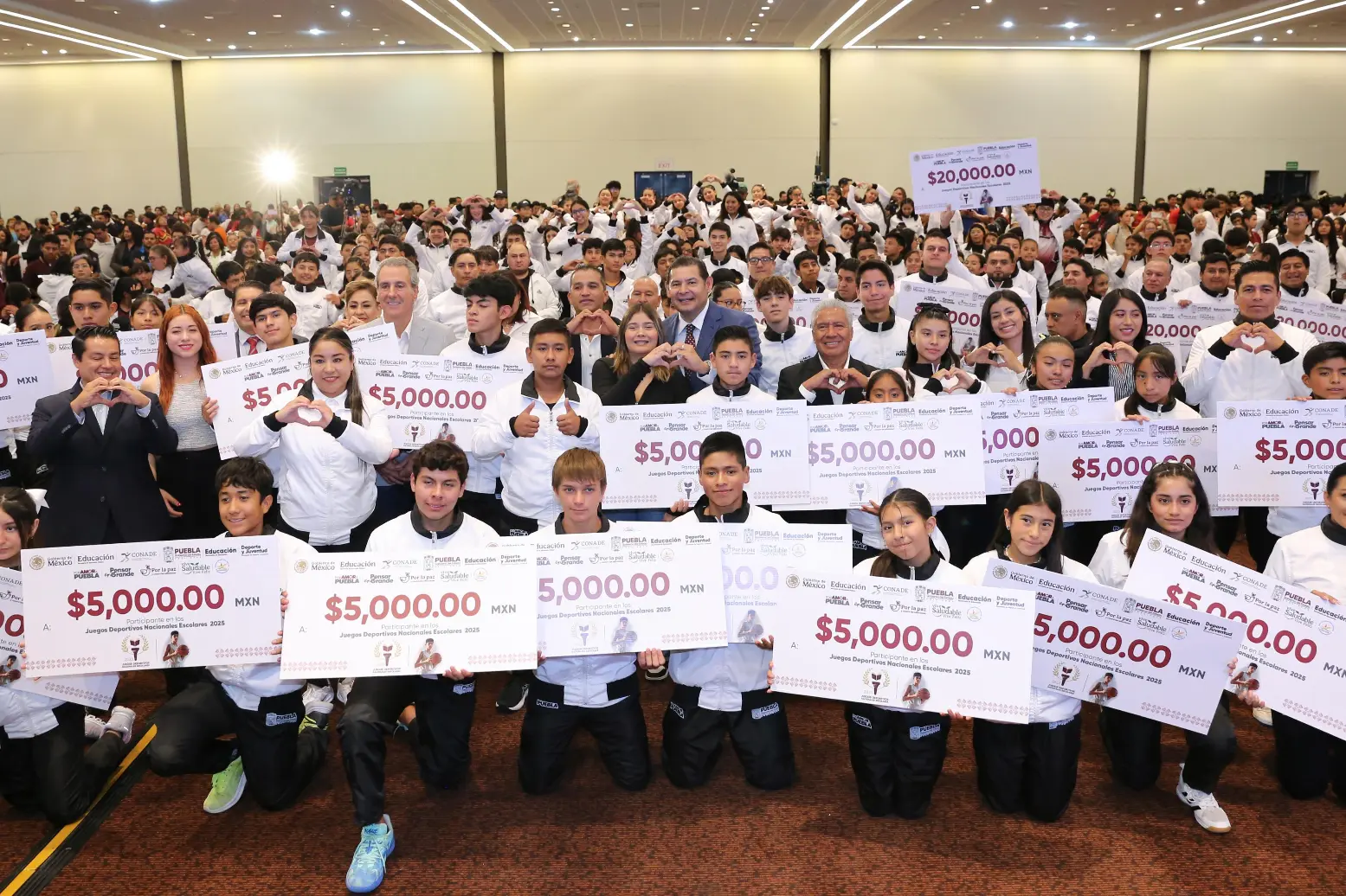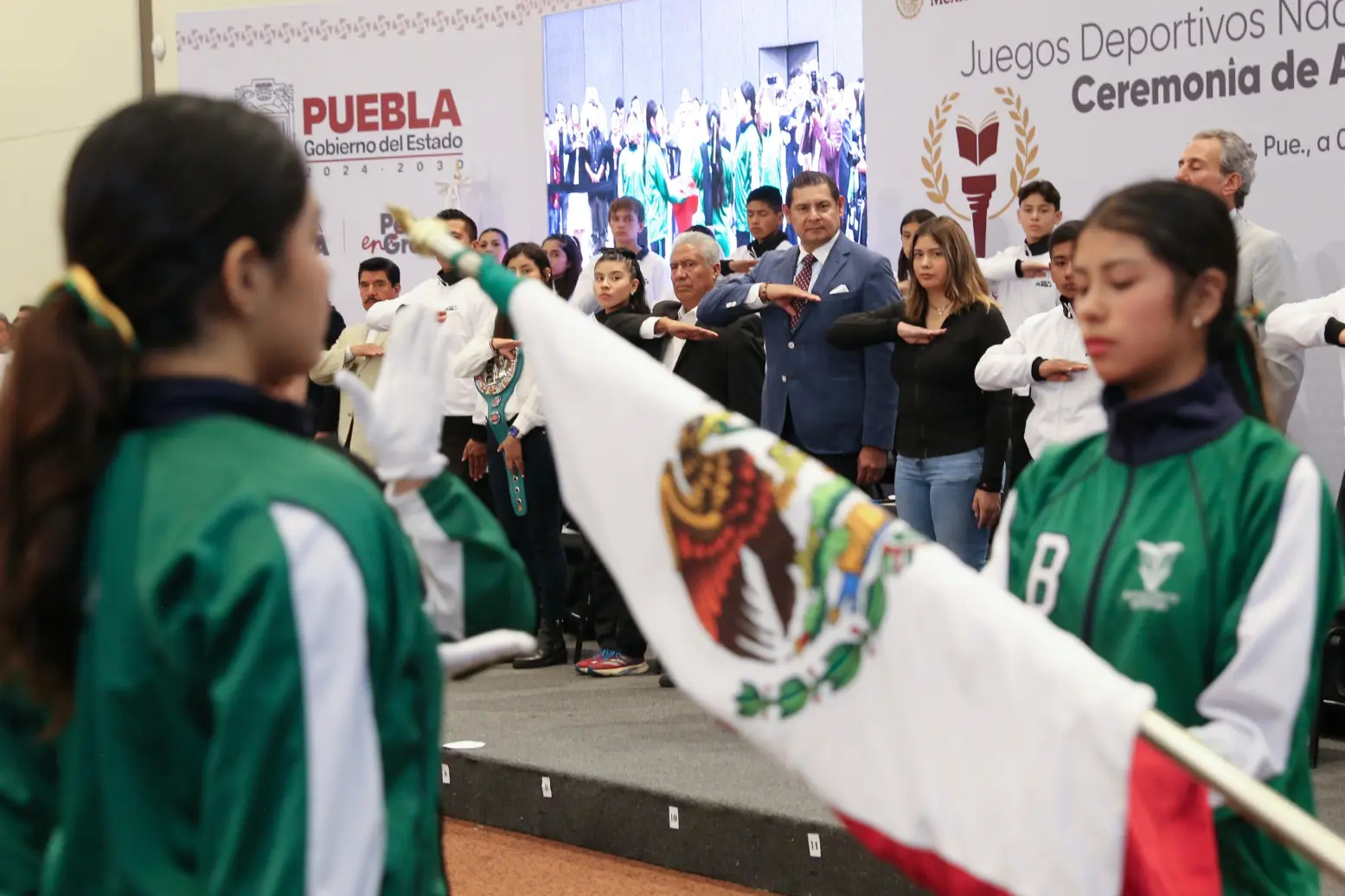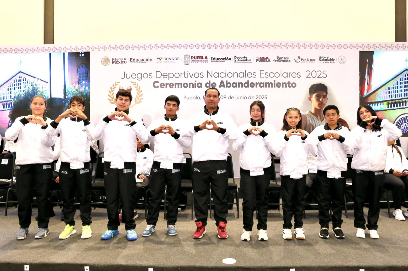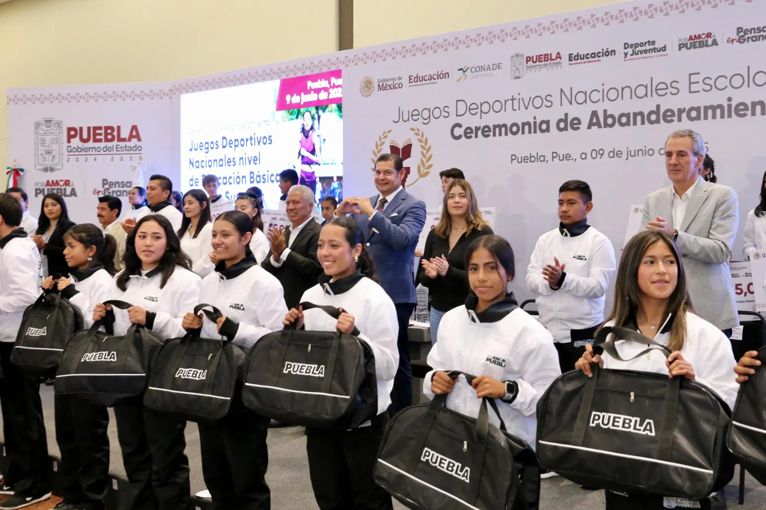Durante la ceremonia se entregaron reconocimientos simbólicos a 45 jóvenes deportistas y se tomó la fotografía oficial de la delegación poblana. Por primera vez, los tres niveles educativos —primaria, secundaria y media superior— participarán juntos en estos juegos.