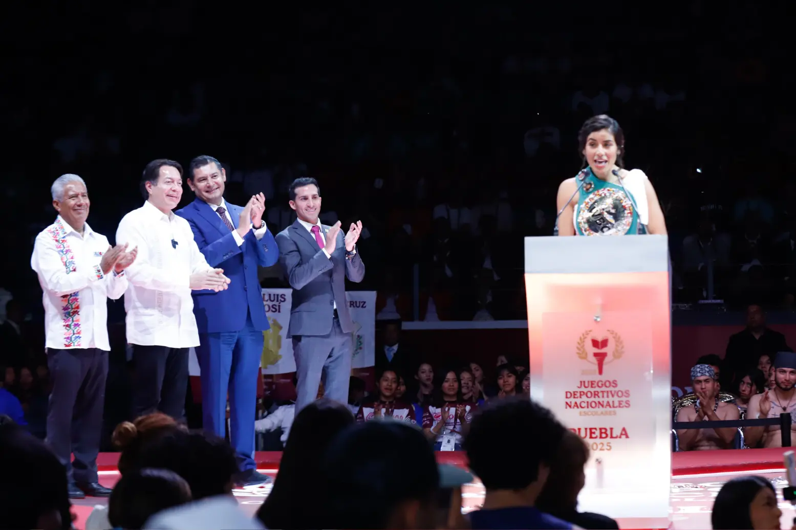 CIUDAD DE PUEBLA, Pue.- Al inaugurar los Juegos Deportivos Nacionales Escolares 2025 a desarrollarse del 18 de junio al 4 de julio, con más de 20 mil atletas de las 32 entidades federativas, el secretario de Educación Pública del Gobierno Federal, Mario Delegado, señaló que la presidenta de México, Claudia Sheinbaum, ha pedido que el deporte llegue a las escuelas y estas se conviertan en un espacio de educación integral. Hoy Puebla por primera vez reúne a estudiantes de los niveles primaria, secundaria y bachillerato,