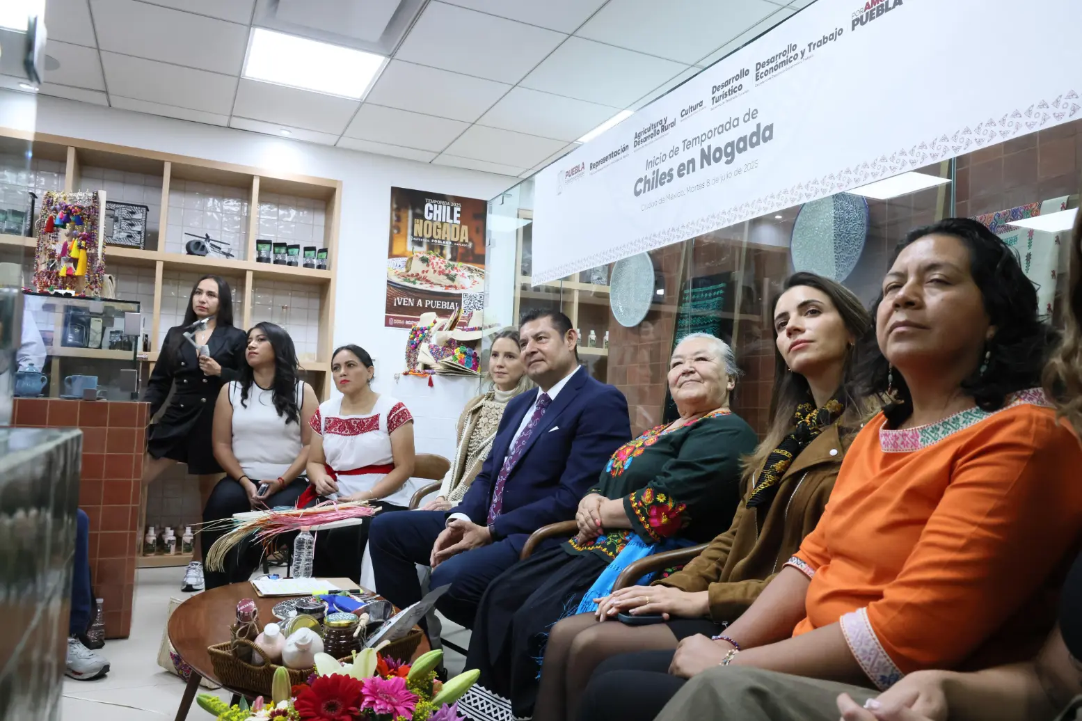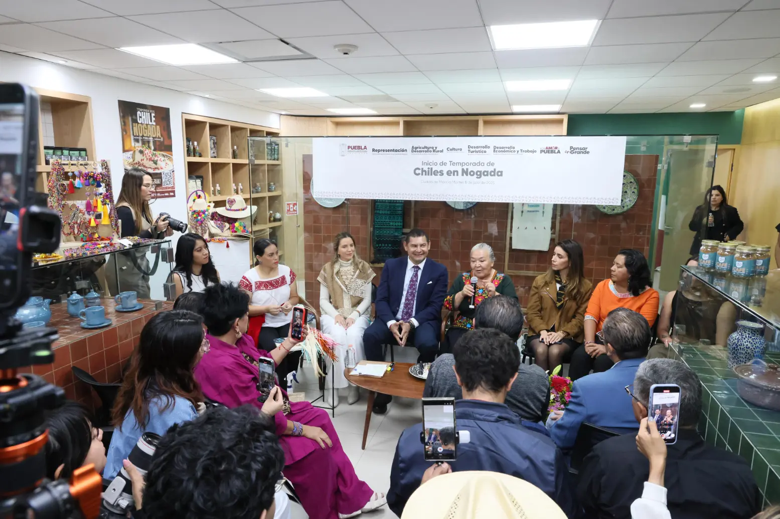 En su oportunidad, la secretaria de Desarrollo Turístico, Carla López-Malo, informó que durante la temporada de Chiles En Nogada, del 16 de julio hasta el mes de septiembre, se comercializarán más de 4.5 millones de ejemplares, que dejarán una derrama económica de más de dos mil millones de pesos para las y los productores, cocineras tradicionales y sector restaurantero. «Los productos son endémicos, la manzana, la pera, la nogada y el chile poblano, entonces es muy importante que, si quieren probar un Chile en Nogada, lo hagan en Puebla».