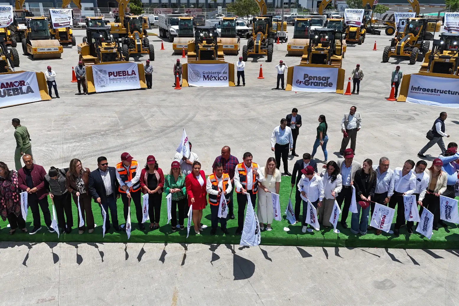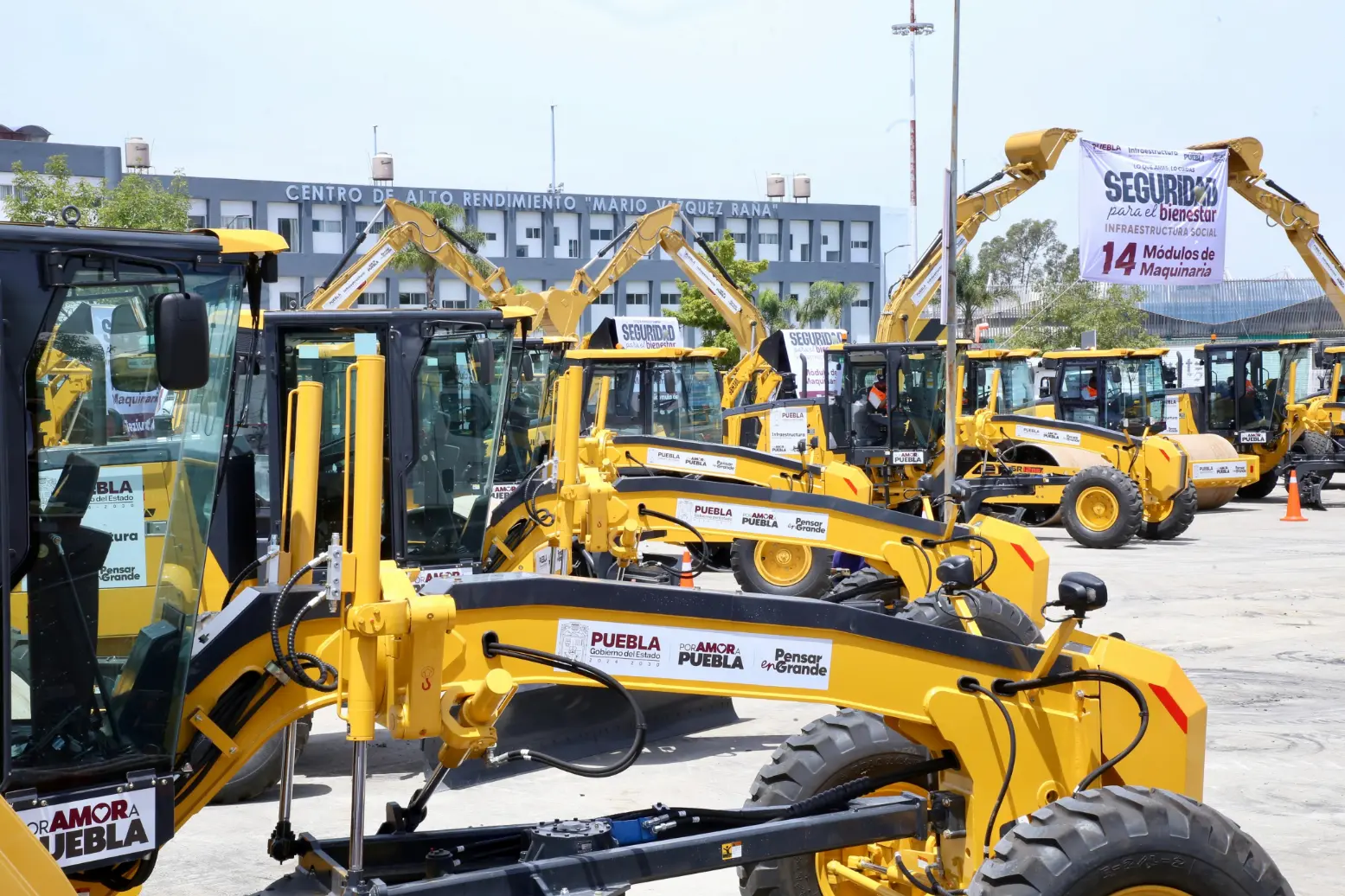 La maquinaria entregada —154 unidades en total, repartidas en 14 módulos — incluye: barredoras urbanas para entradas y salidas de la capital, mezcladoras en frío, recicladoras de carpeta asfáltica, motoconformadoras, retroexcavadoras, excavadoras y petrolizadoras. Este parque vehicular garantiza la seguridad en zonas vulnerables y la reactivación del campo poblano, al darle mantenimiento a los caminos rurales y sacacosechas.