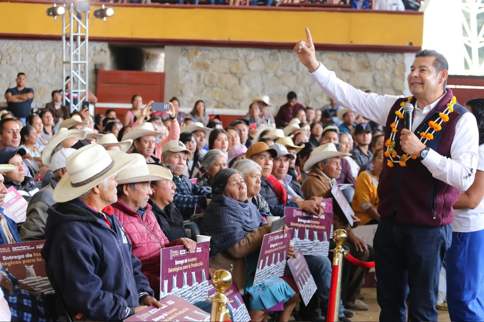 Ante casi 2 mil personas de la región, el mandatario estatal reafirmó que el interés de su administración es que ganen bien las y los campesinos. Por eso, de la mano de la presidenta de México, Claudia Sheinbaum y con tecnología de primera, se transforma el campo poblano para generar seguridad económica en los bolsillos de las familias, para que compren medicamentos, ropa para sus hijos y para que vivan bien.