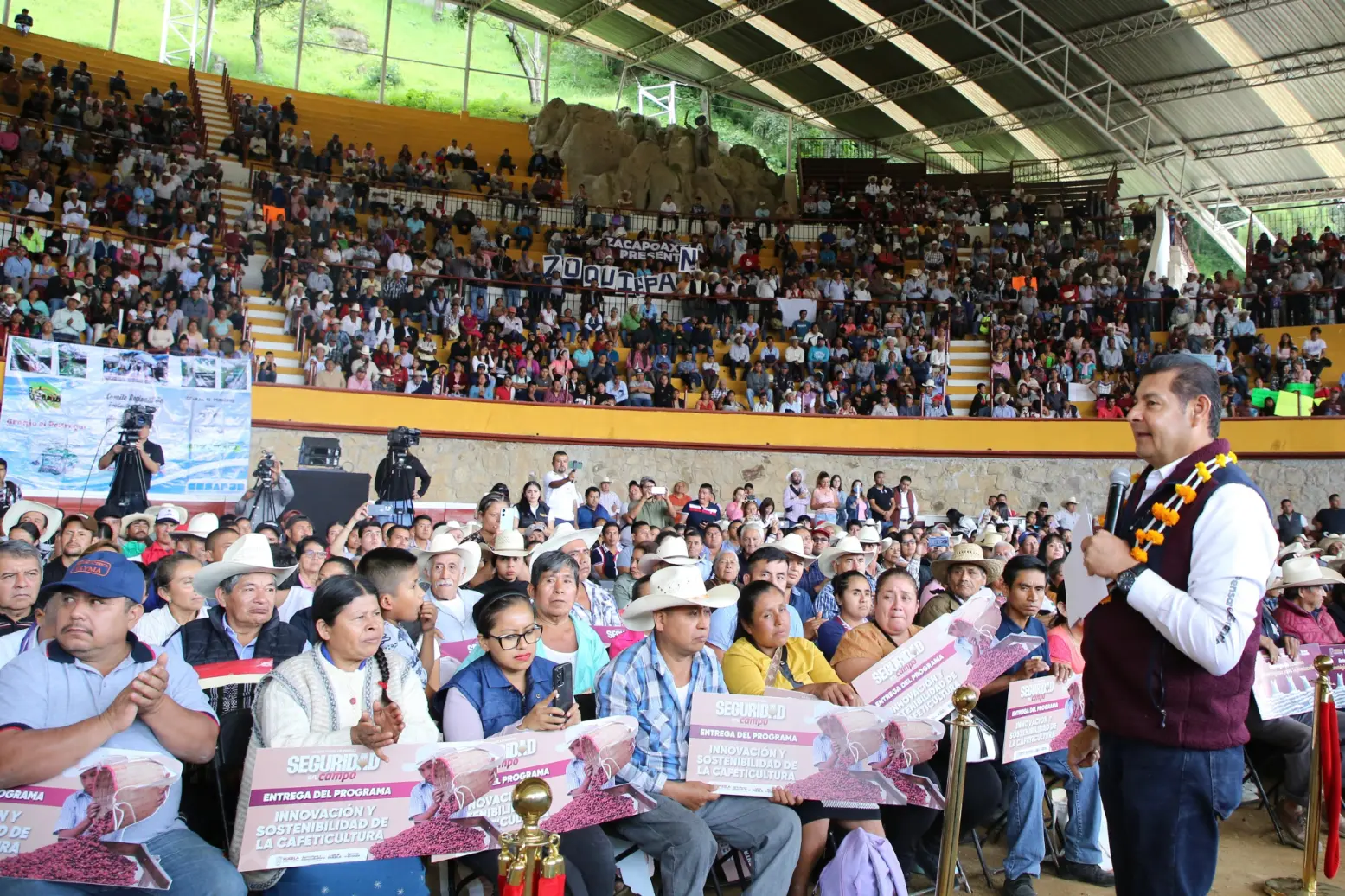 - Campesinos de la microrregión de Zacapoaxtla recibieron un Módulo de Maquinaria, apoyos para el desarrollo pecuario y acuícola, así como para la sostenibilidad de la cafeticultura.