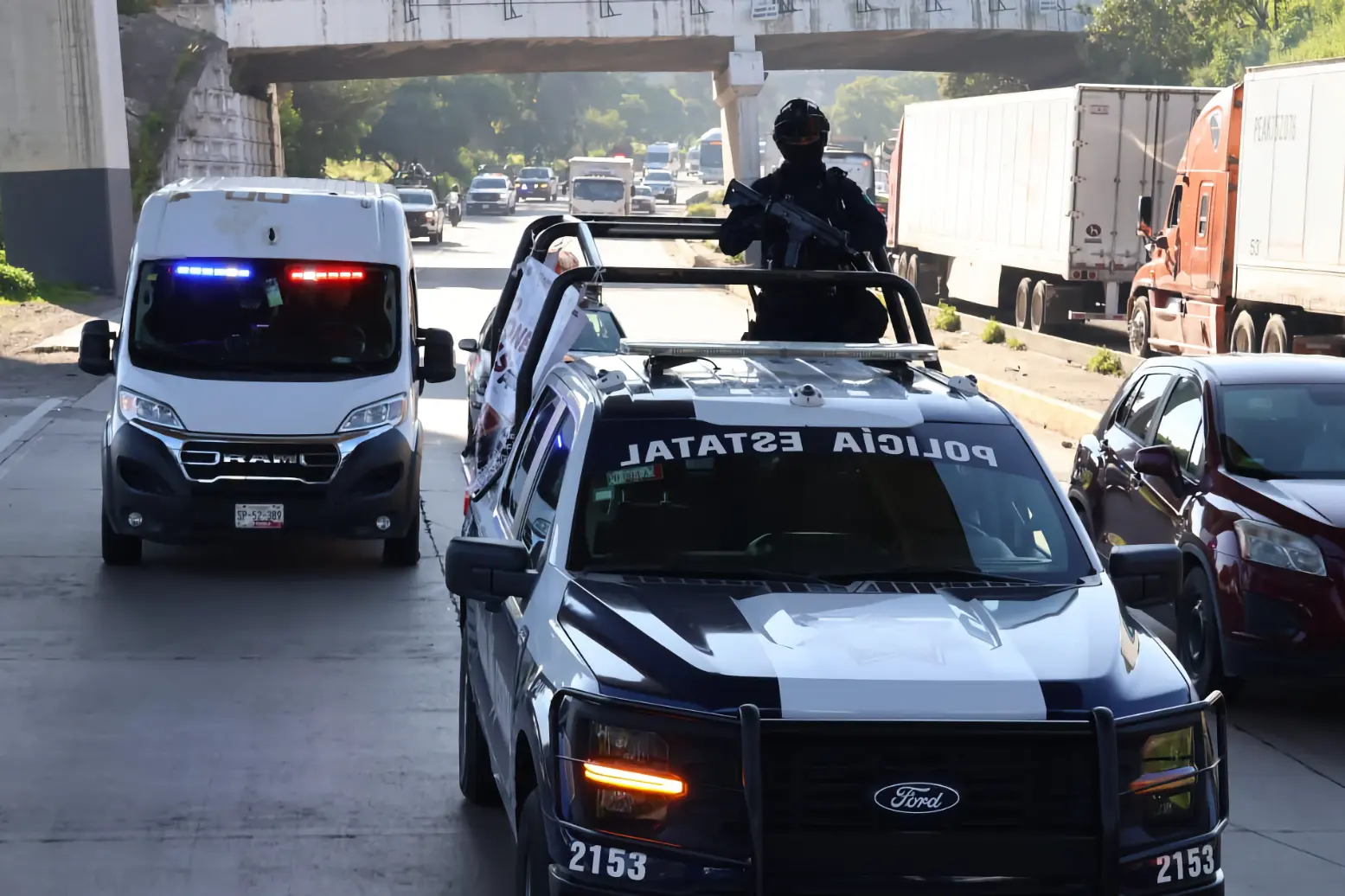 Por su parte el director de Operaciones Policiales de la Secretaría de Seguridad Pública, teniente Raymundo Garduño, destacó que alineados a la estrategia nacional del gobierno de la presidenta Claudia Sheinbaum, se trabaja en coordinación con los tres niveles de gobierno en puntos estratégicos para combatir el robo a transporte de carga.