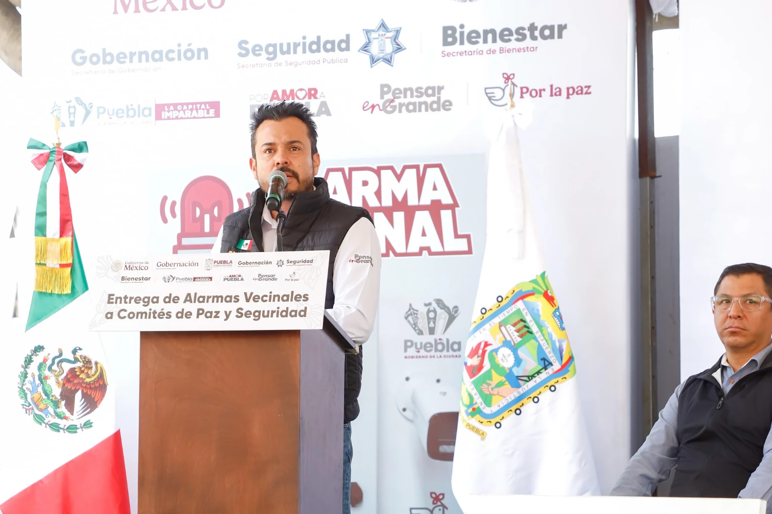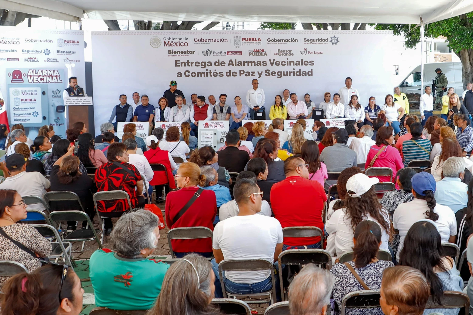 En su intervención, el subsecretario de Prevención del Delito y Derechos Humanos de la Secretaría de Gobernación, Francisco Ramos Montaño, informó que en esta ocasión se otorgaron 79 alarmas vecinales y destacó la participación de la ciudadanía en este programa. Mencionó que previamente, junto con las presidentas de comité, realizaron brigadas barriales para detectar puntos de riesgo, como fueron puntos de venta de alcohol, que serán atendidos por normatividad del Ayuntamiento.
