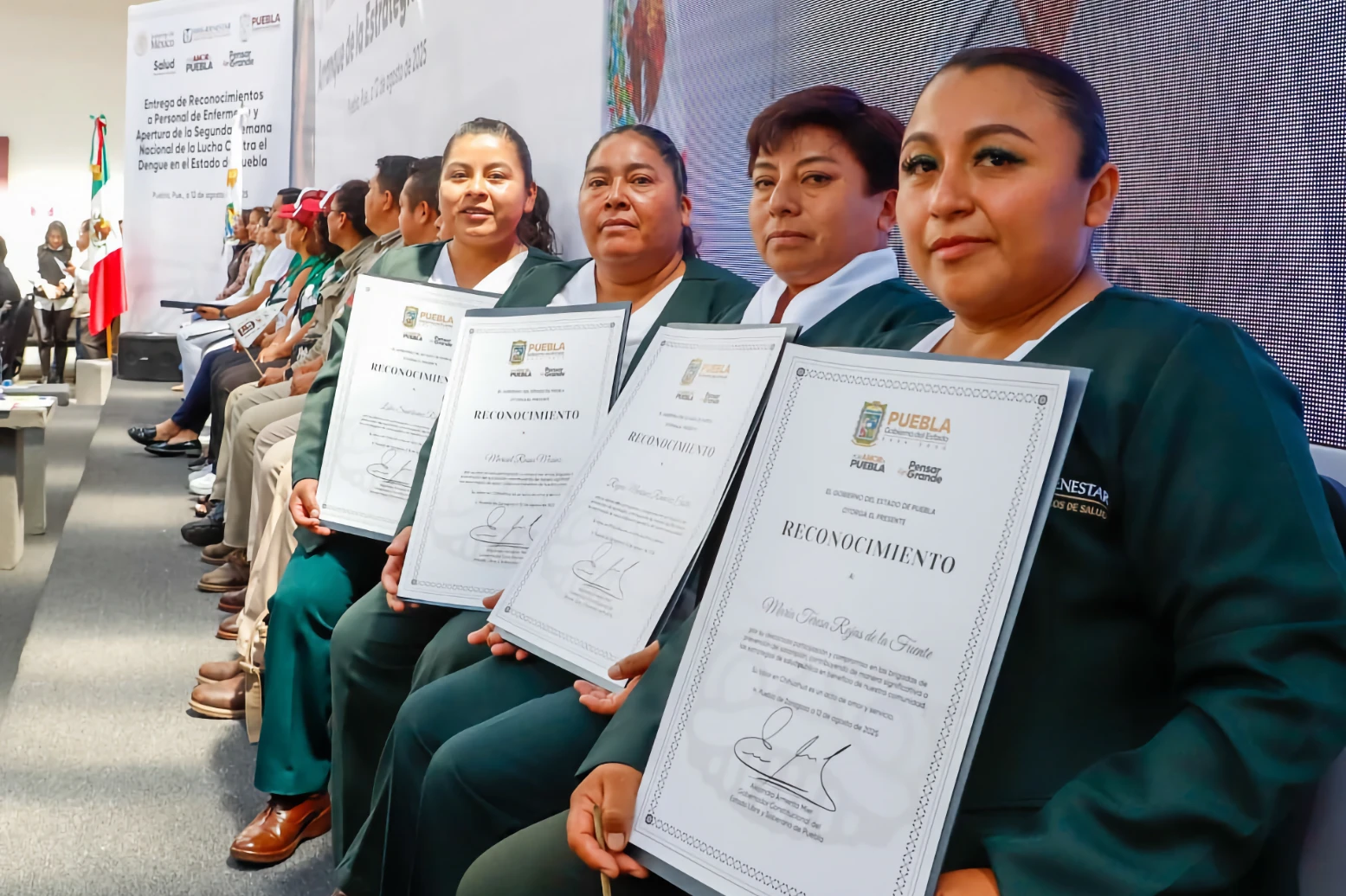 Durante el evento, también se rindió un homenaje al personal de enfermería, en especial a quienes acudieron al estado de Chihuahua para reforzar el bloqueo sanitario ante los casos de sarampión en el norte del país. Entre ellas, la enfermera Marisol Rosas, quien al recibir su reconocimiento dijo que es un incentivo para continuar su labor de cuidar el bienestar de las y los poblanos y donde se les convoque para apoyar.