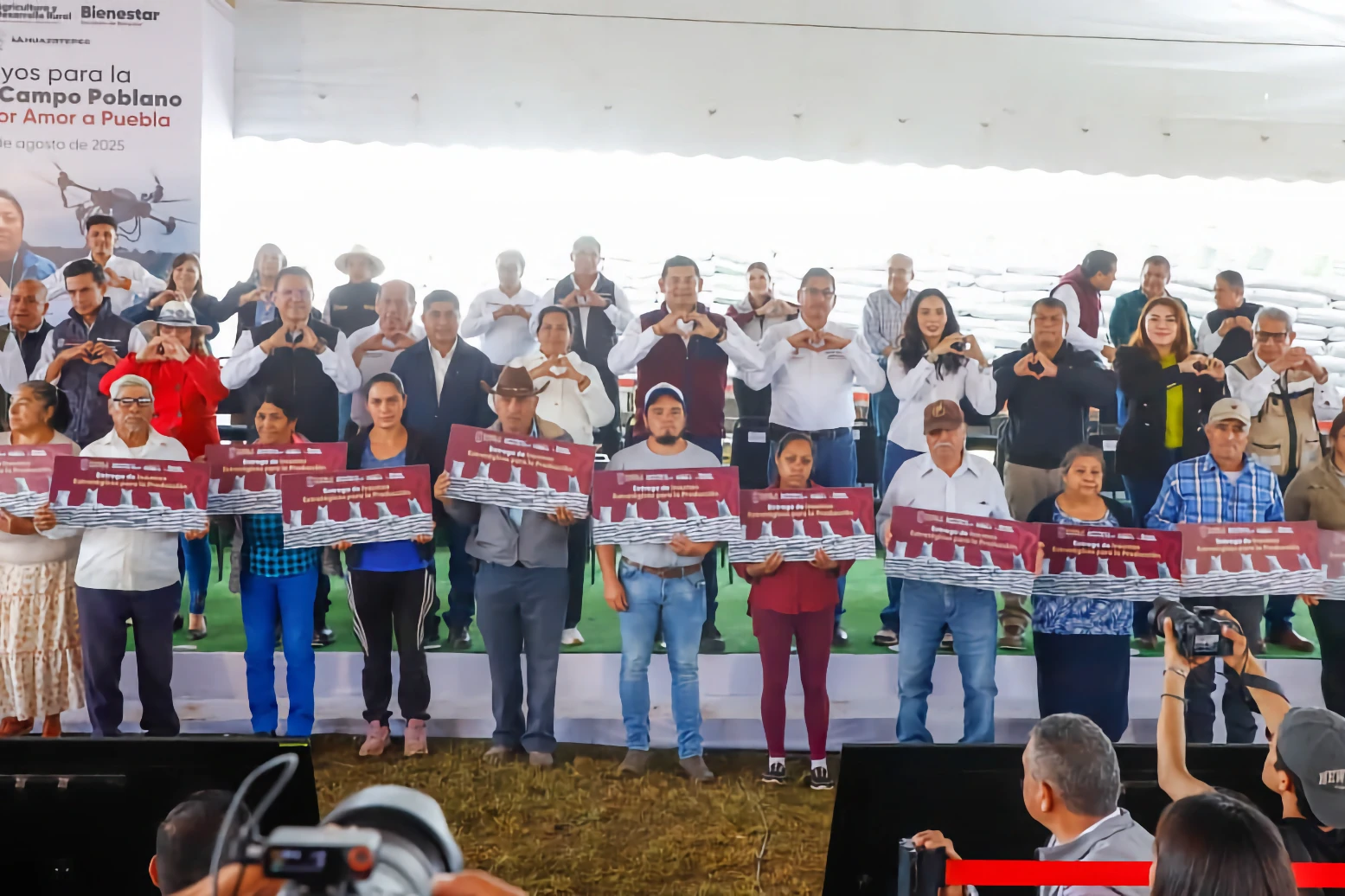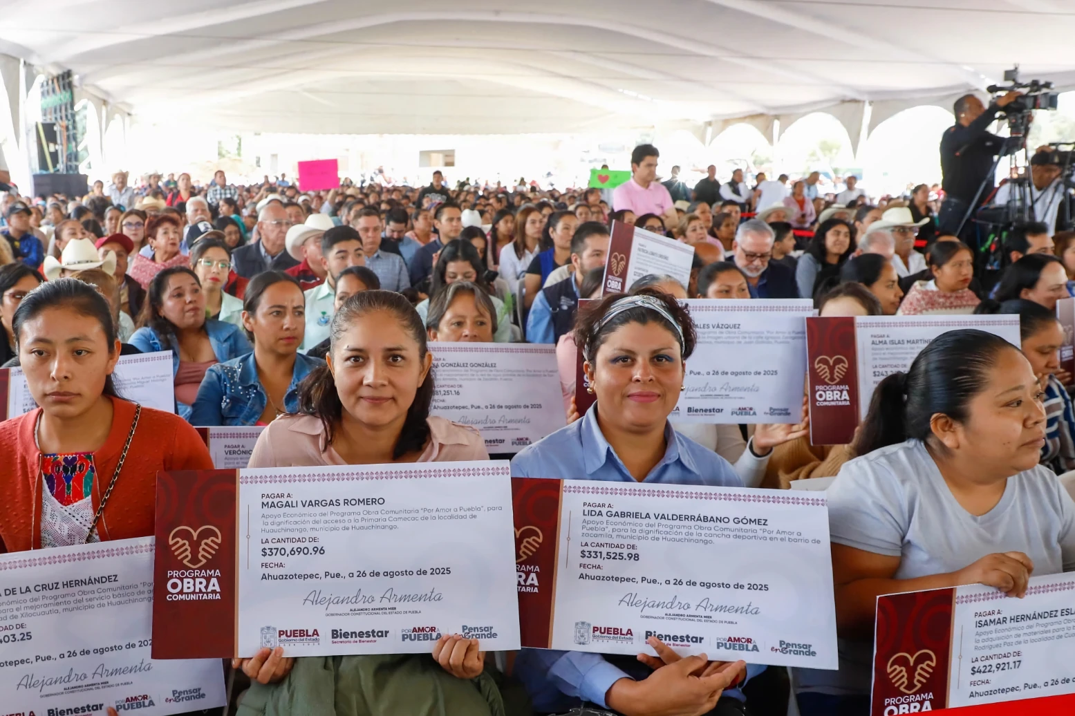 AHUAZOTEPEC, Pue.- El gobernador Alejandro Armenta encabezó la entrega de acciones del programa de obra comunitaria “Por Amor a Puebla”, consolidado como una herramienta clave para reconstruir el tejido social, fomentar la paz y generar bienestar en las comunidades. En esta jornada se entregaron de manera directa y sin intermediarios, insumos, maquinaria y herramienta para mil 150 productores, con una inversión superior a 14 millones de pesos; así como más de 16 millones de pesos para 54 proyectos de obra comunitaria, a comités ciudadanos encabezados principalmente por mujeres.