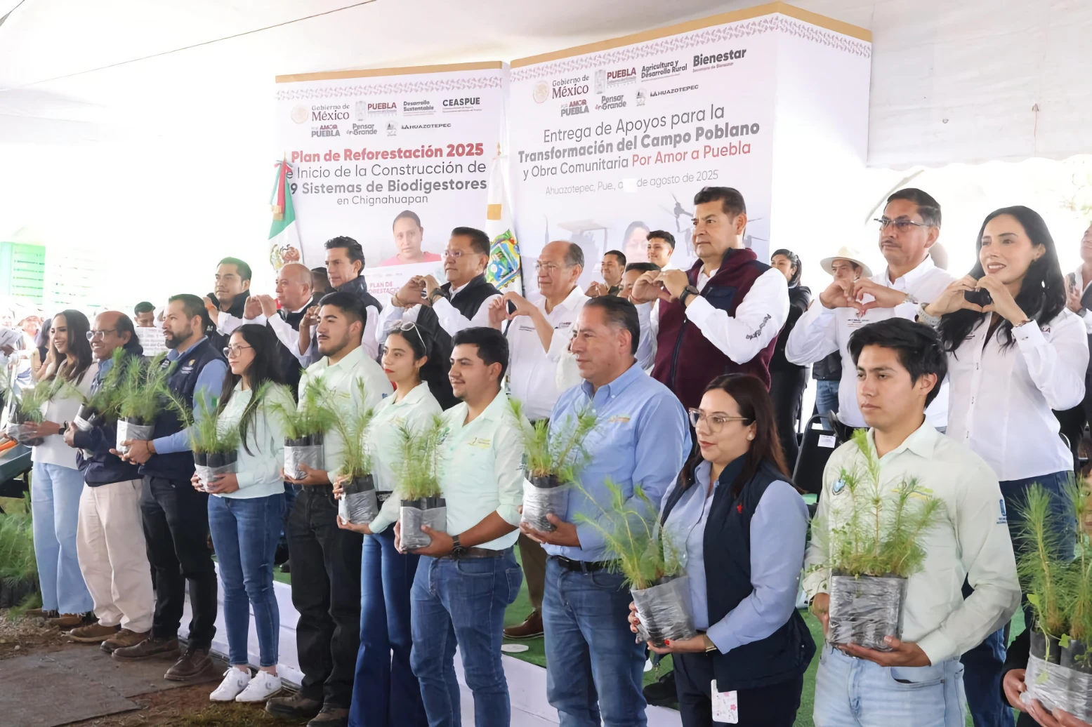 AHUAZOTEPEC, Pue.- En esta microrregión, el gobernador Alejandro Armenta continúa con el Plan de Reforestación 2025, una estrategia que contempla la entrega de 1.7 millones de árboles en todo el estado. Como parte de esta jornada, se entregaron 65 mil 500 plantas de pino blanco, pino triste y frutales a los municipios de Ahuazotepec, Chiconcuautla, Juan Galindo, Tlaola y Zacatlán, con el fin de restaurar ecosistemas dañados y fortalecer la soberanía ambiental.