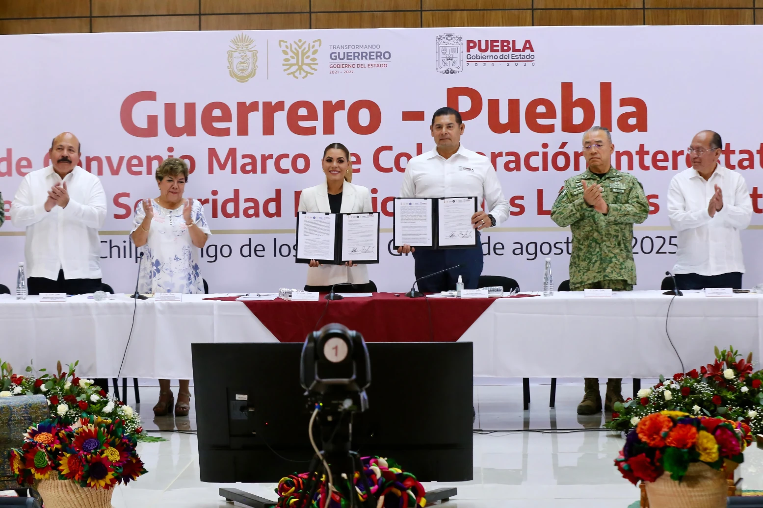 CHILPANCINGO, Gro.- Con la firma del Convenio Marco de Colaboración Interestatal para fortalecer la Seguridad Pública en los Límites Territoriales, los gobiernos de Puebla y Guerrero dan un paso decisivo hacia la construcción de paz y confianza ciudadana. Este acuerdo consolida la estrategia del gobernador Alejandro Armenta, quien a solo 259 días de haber iniciado su gestión, ha logrado blindar a la entidad mediante convenios de seguridad con la mayoría de los estados vecinos.