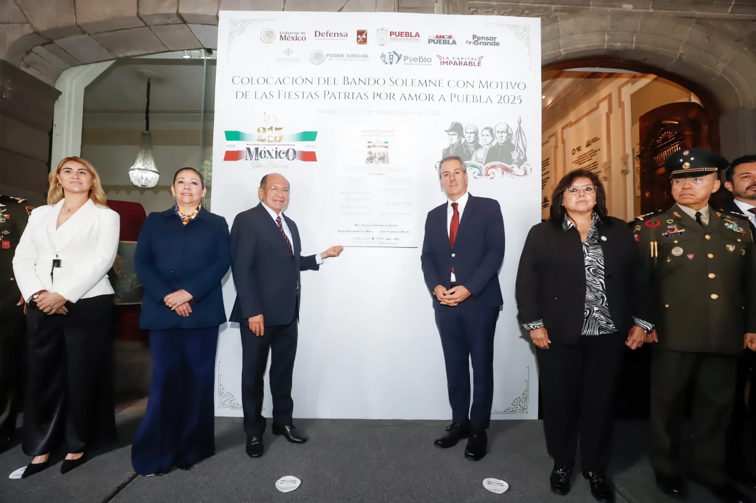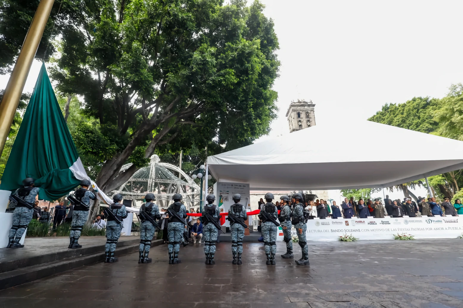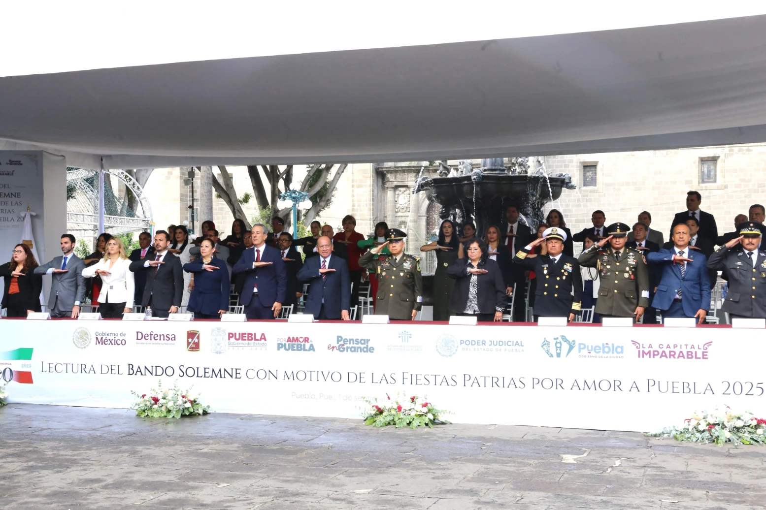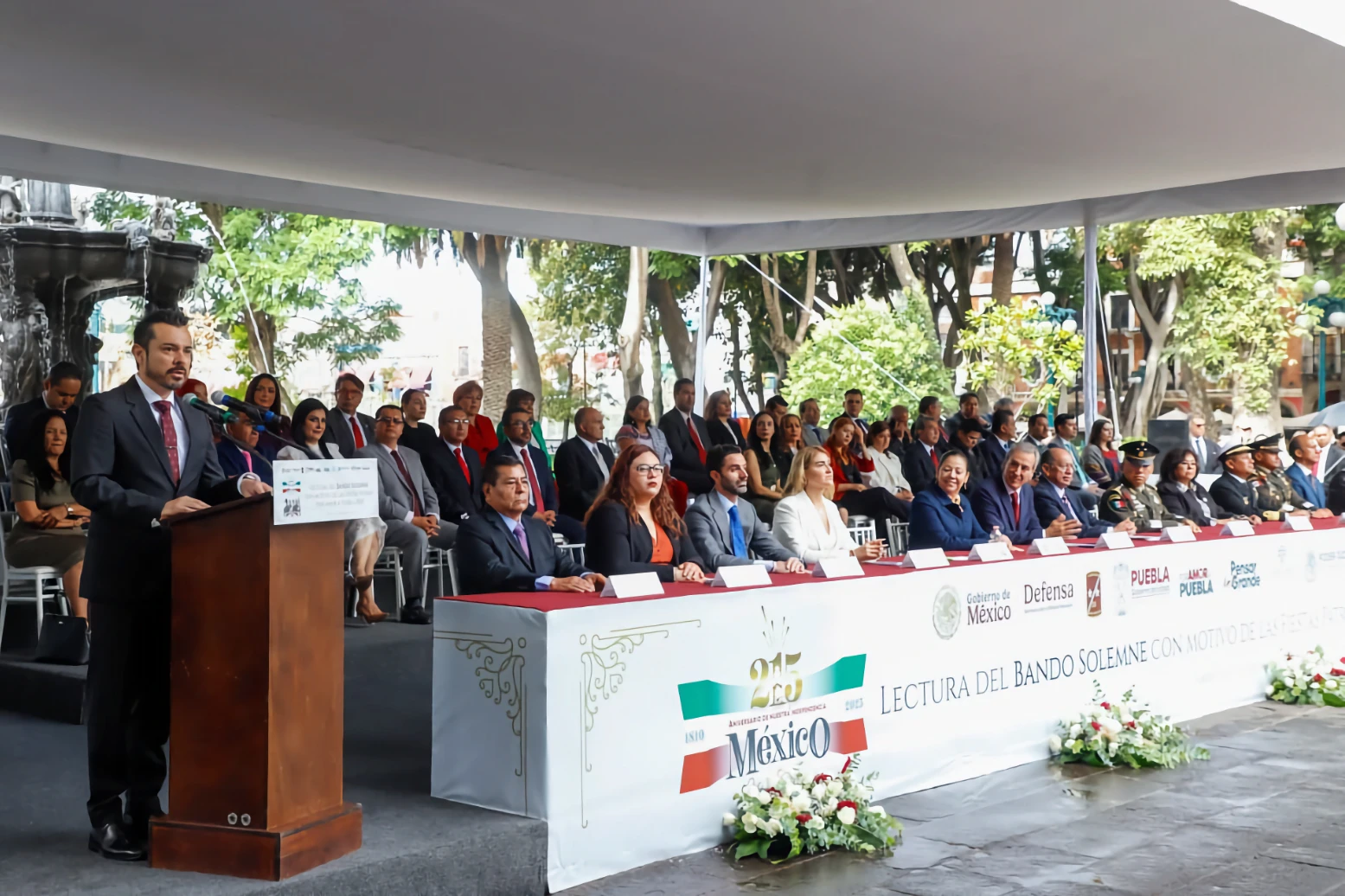 CIUDAD DE PUEBLA, Pue.- En representación del gobernador Alejandro Armenta, el secretario de Gobernación, Samuel Aguilar Pala, encabezó la ceremonia de lectura del Bando Solemne, con lo que marca el comienzo de las actividades cívicas y culturales del mes patrio, así como la conmemoración del 215 Aniversario del Inicio de la Independencia de México.