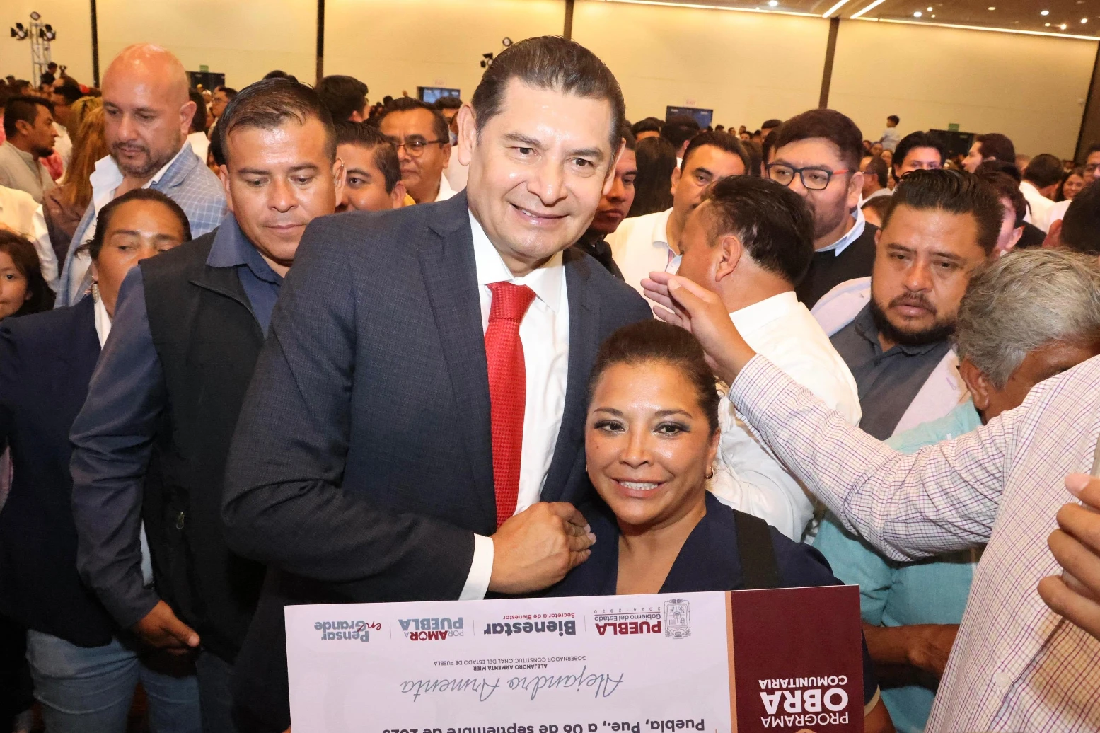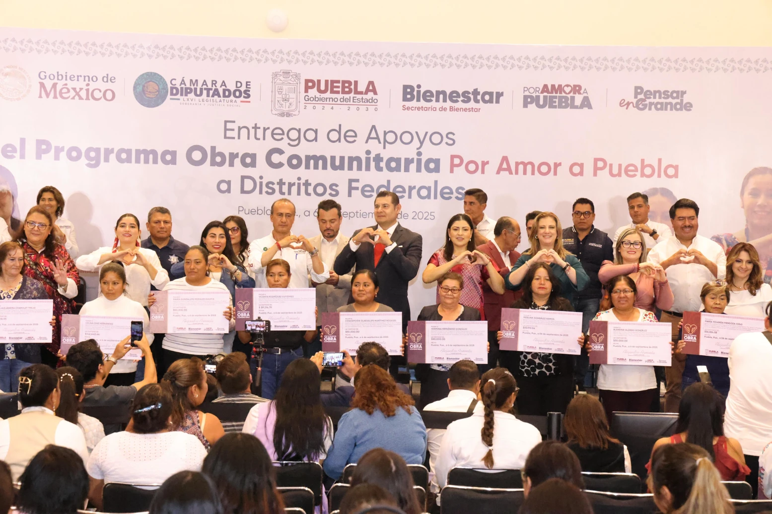CIUDAD DE PUEBLA, Pue.- Con justicia, bienestar y prosperidad compartida, el gobernador Alejandro Armenta encabezó la entrega de 197 apoyos del Programa de Obra Comunitaria por más de 17 millones de pesos, a beneficiarios de los distritos federales, donde aseguró que el programa honra los principios de la cuarta transformación, es decir, con el pueblo todo y sin el pueblo nada.