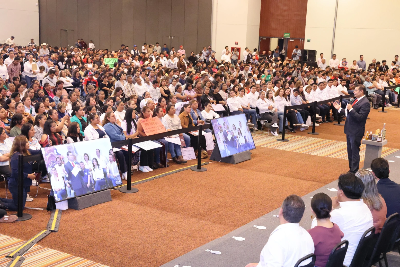 Ante más de mil 500 personas de 70 municipios de la entidad, el titular del ejecutivo estatal reconoció el trabajo de las y los legisladores federales y afirmó que trabajan en equipo y en unidad. «Somos equipo y quiero decirles que estoy muy contento con el trabajo de los legisladores y legisladoras», afirmó.