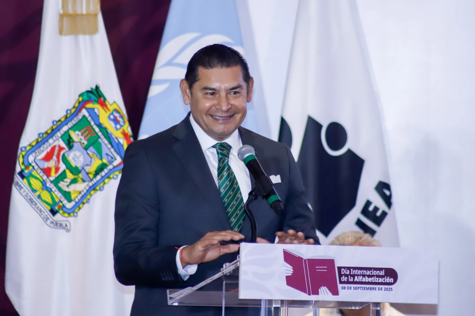 En su mensaje, el gobernador de Puebla, Alejandro Armenta, resaltó que el rostro de la ineptitud gubernamental es el analfabetismo. «Cuando se ama a Puebla y a México, hay que hacer todo por atender». Resaltó que combatir el analfabetismo es una obligación social, de ahí que, en conjunto, avancen para combatir el fenómeno en la entidad. Señaló que en Puebla hay cerca de 300 mil poblanos que no saben leer y escribir, por lo que ocupa el sexto lugar a nivel nacional.