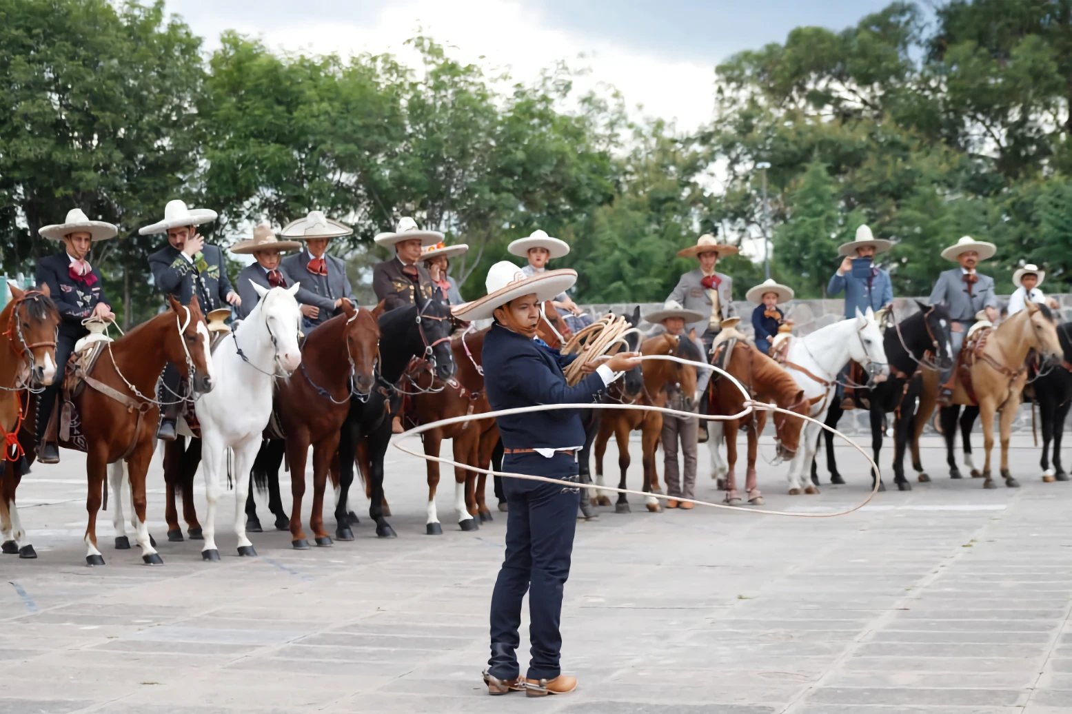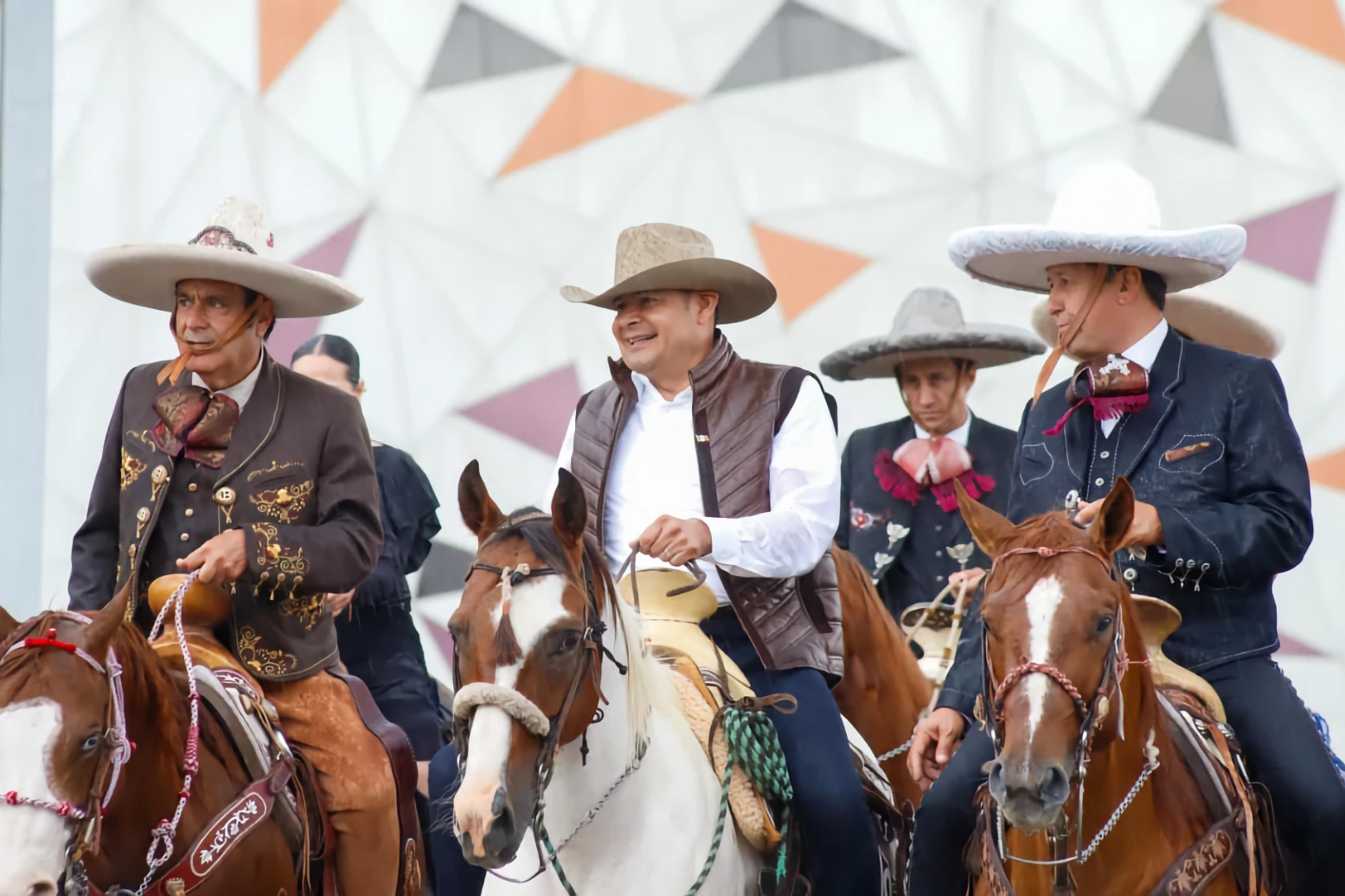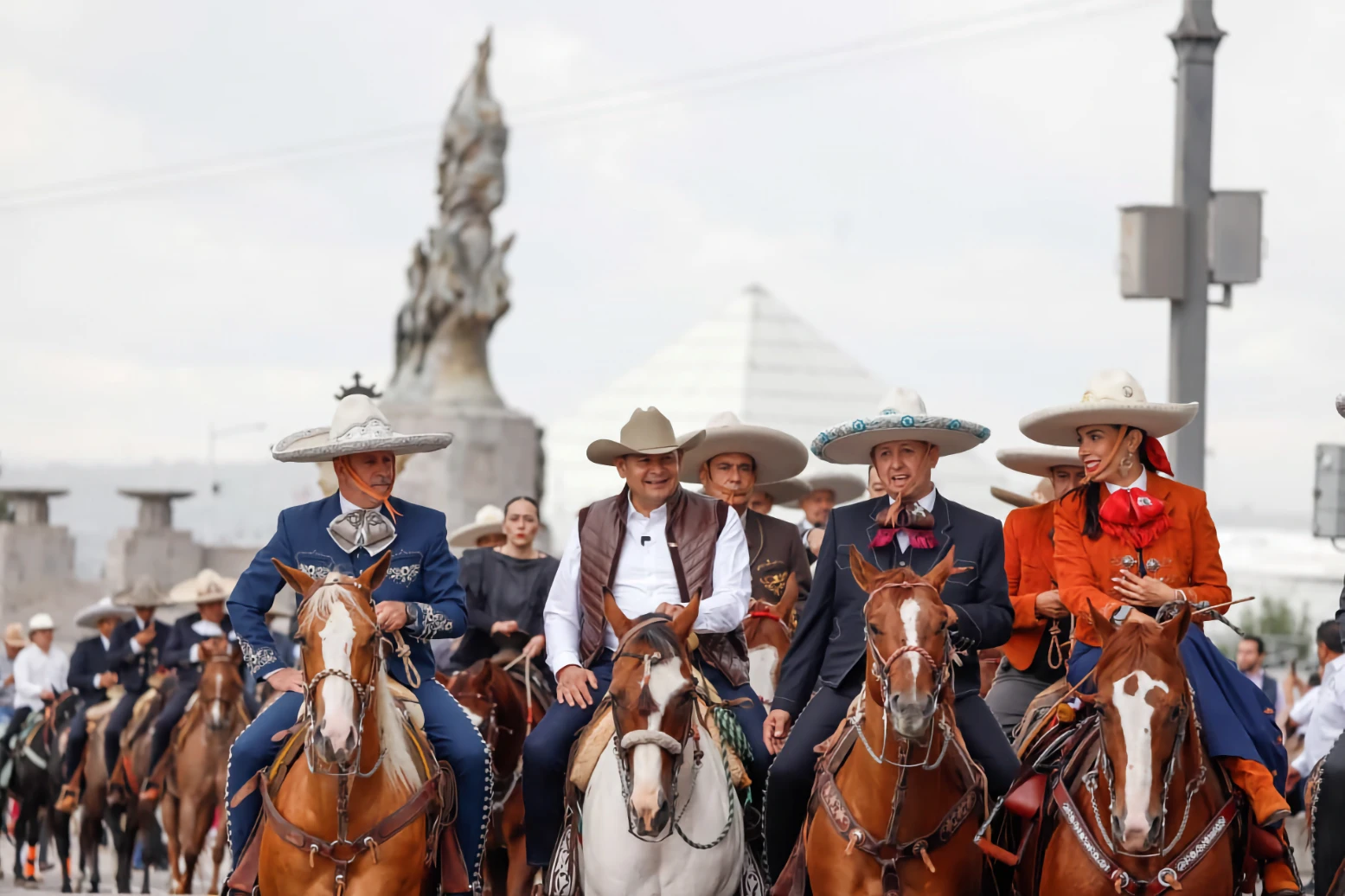 La cabalgata inició en Plaza la Victoria, donde el ejecutivo estuvo acompañado por la presidenta de la Junta de Gobierno y Coordinación Política del Congreso del Estado, Laura Artemisa García Chávez; el presidente de la Federación Mexicana de Charrería, Salvador Barajas del Toro, y más de 60 charros.