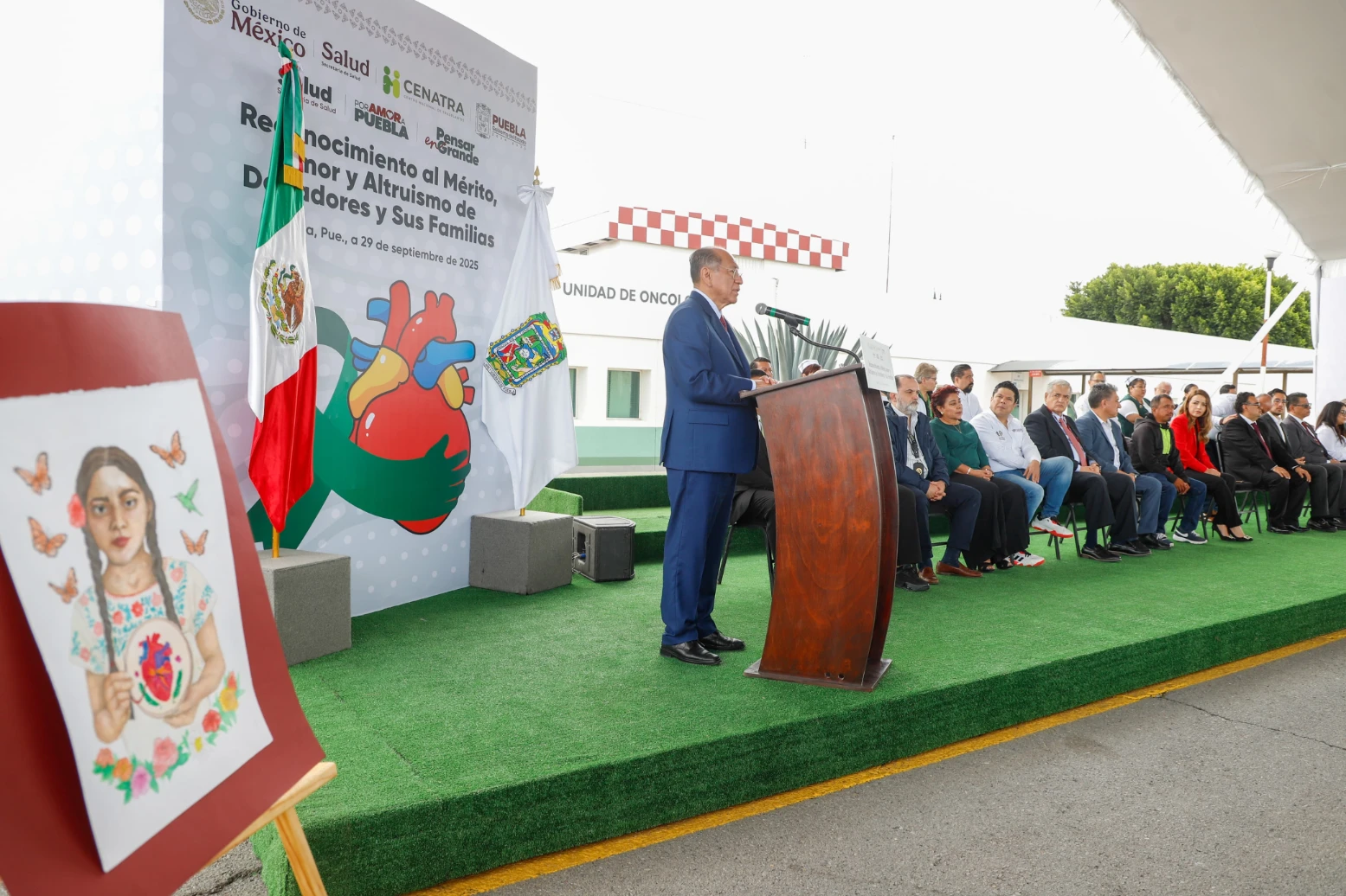 La conmemoración contó con la presencia de la directora general del Centro Nacional de Trasplantes del Gobierno de México, Rosa Erro Aboytia, quien entregó un reconocimiento al Gobierno de Puebla, por ocupar el cuarto lugar a nivel nacional en donación de tejidos y órganos y el secretario de Gobernación, Samuel Aguilar Pala, en representación del ejecutivo estatal, Alejandro Armenta, recibió dicha distinción.