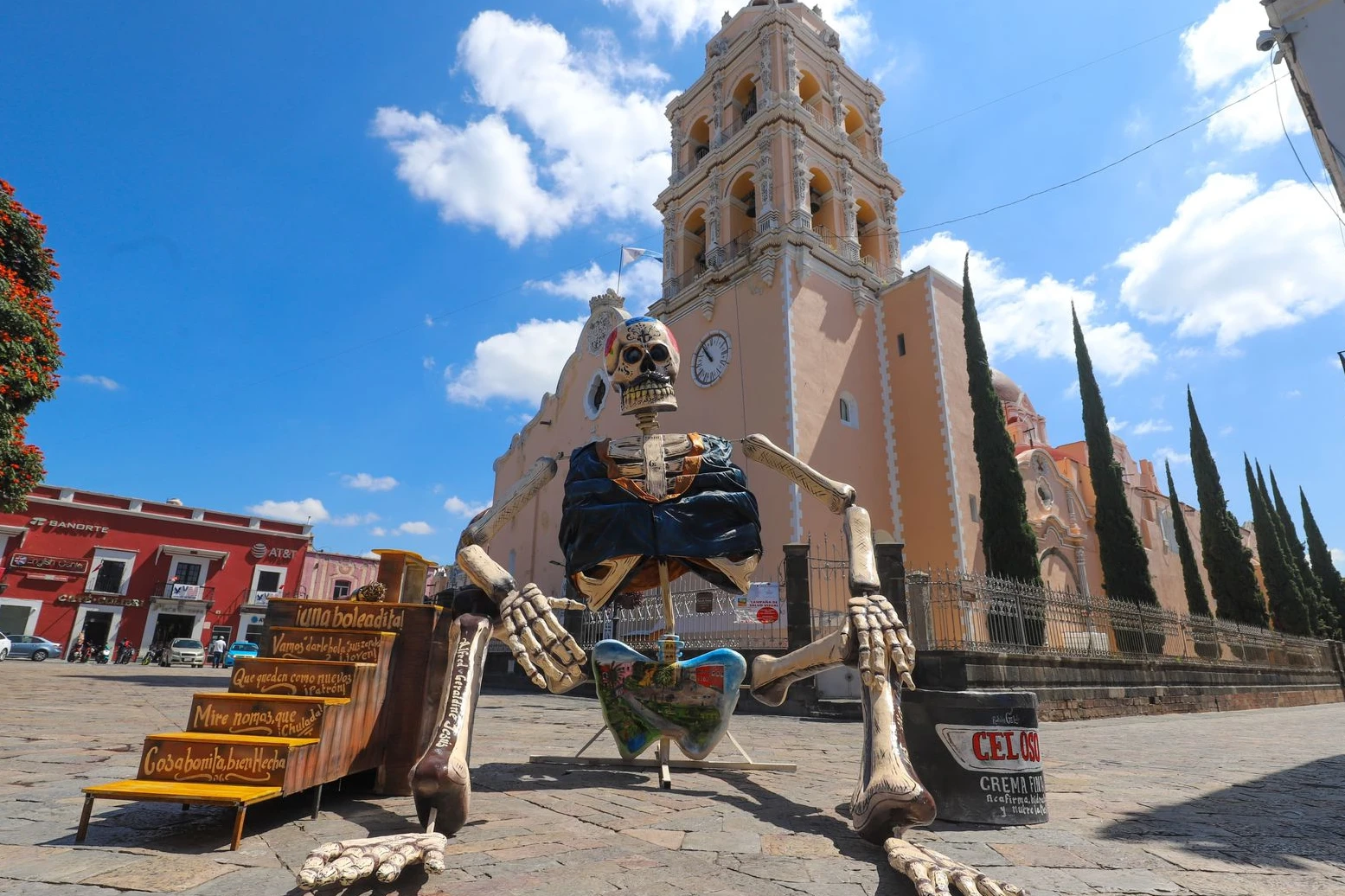 Cada catrina cuenta una historia, desde la Catrina Obrera, que recuerda el legado femenino en la industria textil, hasta el Catrín Panadero, tributo al pan artesanal que aún nutre hogares y memoria. También destacan figuras como la Catrina Tejedora, la Tortillera y el Bolero, oficios tradicionales representados por artistas locales y jóvenes creadores que plasman el alma de un pueblo en cartonería, pintura y escultura monumental.