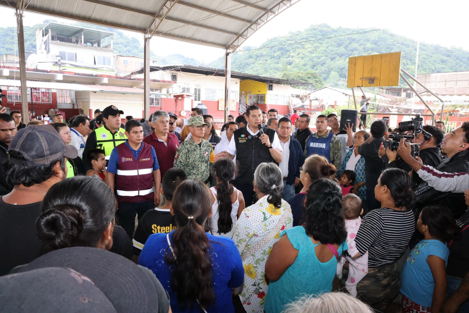 El gobernador de Puebla visitó la comunidad de la Ceiba en el municipio de Xicotepec para estar cerca de las familias damnificadas.
