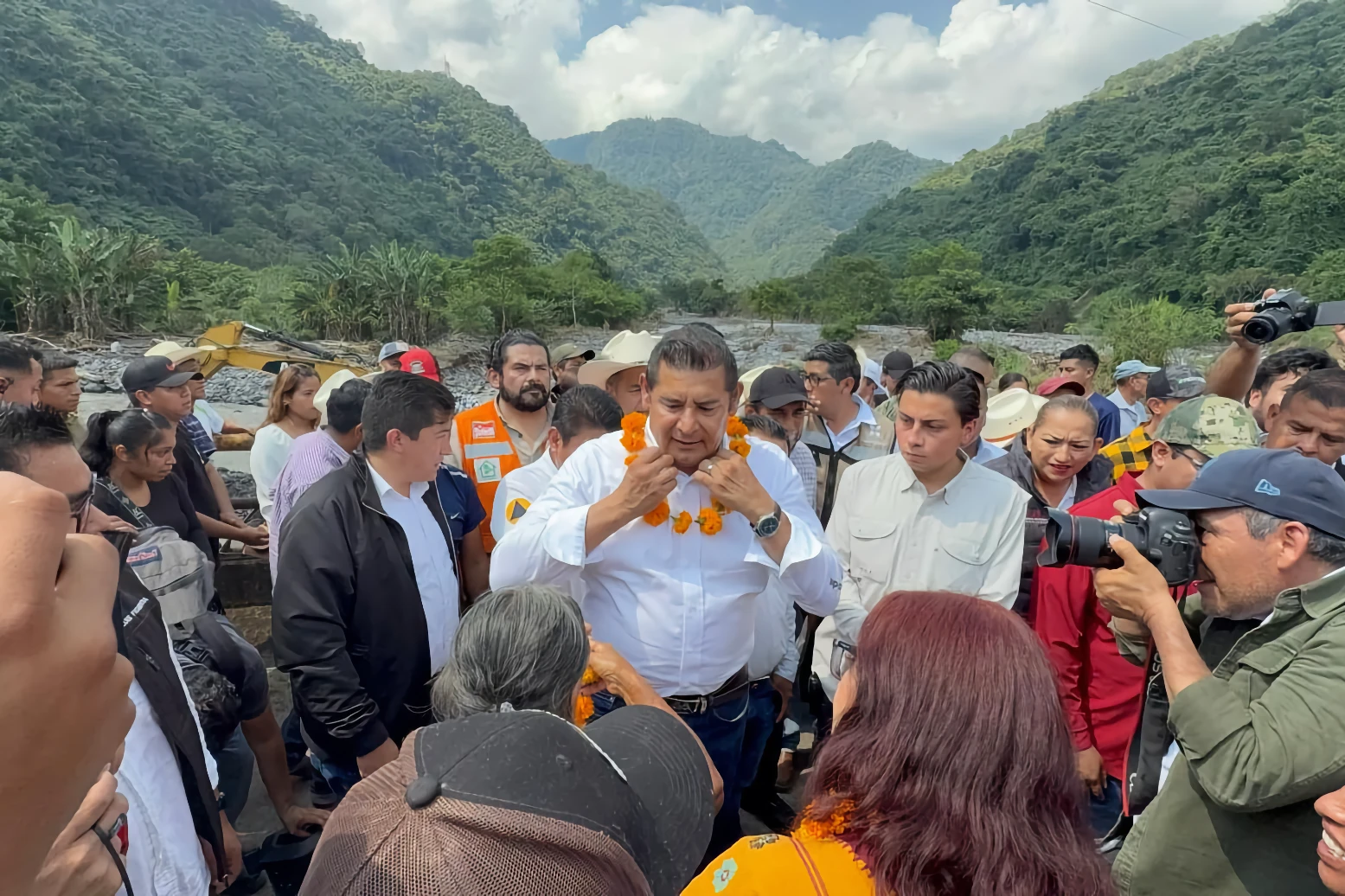 Acompañado por la coordinadora general de Asuntos Intergubernamentales y Participación Social del Gobierno de México, Leticia Ramírez Amaya, en representación de la presidenta de México, Claudia Sheinbaum, el mandatario estatal constató las afectaciones causadas por el aumento del caudal. También escuchó a la población, con quienes se comprometió a otorgarles apoyo y reafirmó el compromiso del Gobierno del Estado para garantizar la seguridad de la población, así como restablecer la conectividad vial en la zona.