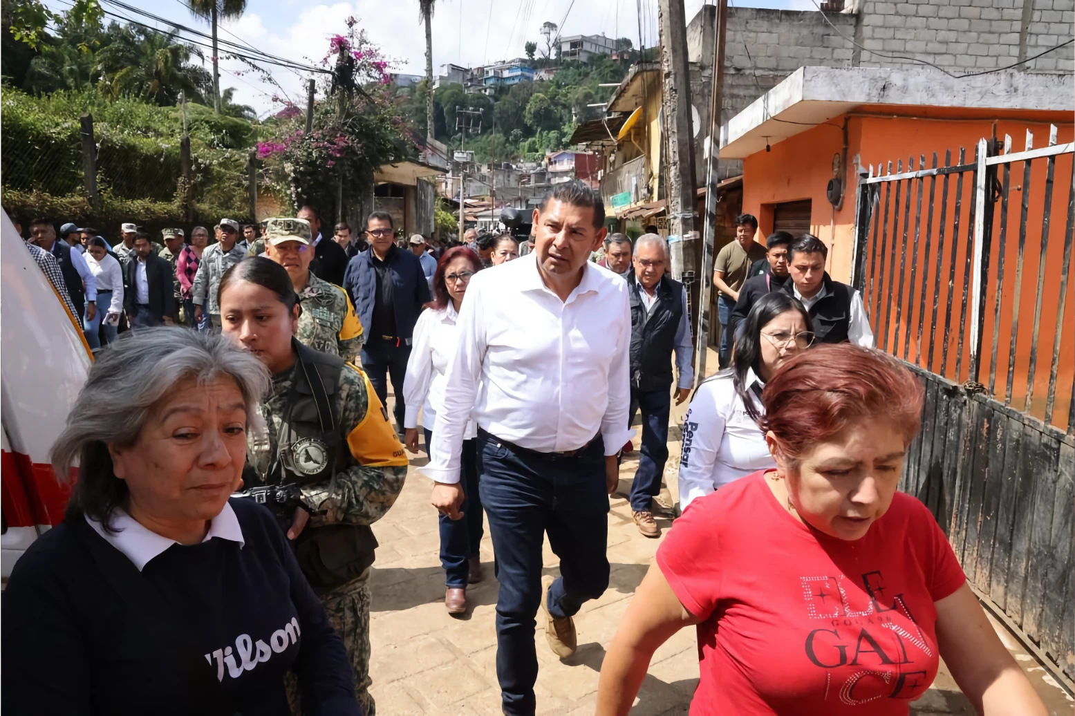 HUAUCHINANGO, Pues.- El gobernador de Puebla, Alejandro Armenta, realizó un recorrido por la colonia Chapultepec, zona afectada por la fuerte lluvia de hace 10 días. En plena etapa de reconstrucción, el mandatario supervisó los trabajos de limpieza en calles y viviendas, afectadas por el desbordamiento del río Chiquito.