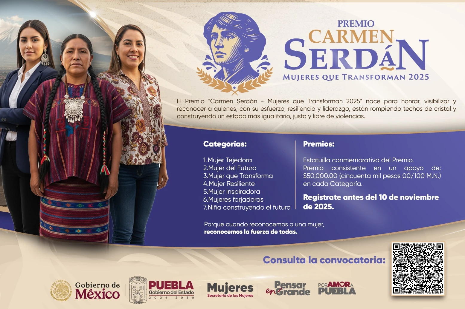 Es importante mencionar que las interesadas en participar en el Premio “Carmen Serdán, Mujeres que Transforman 2025”, pueden enviar sus postulaciones al correo [email protected] a más tardar el 10 de noviembre de 2025. La convocatoria completa puede consultarse en el sitio oficial: sm.puebla.gob.mx.
