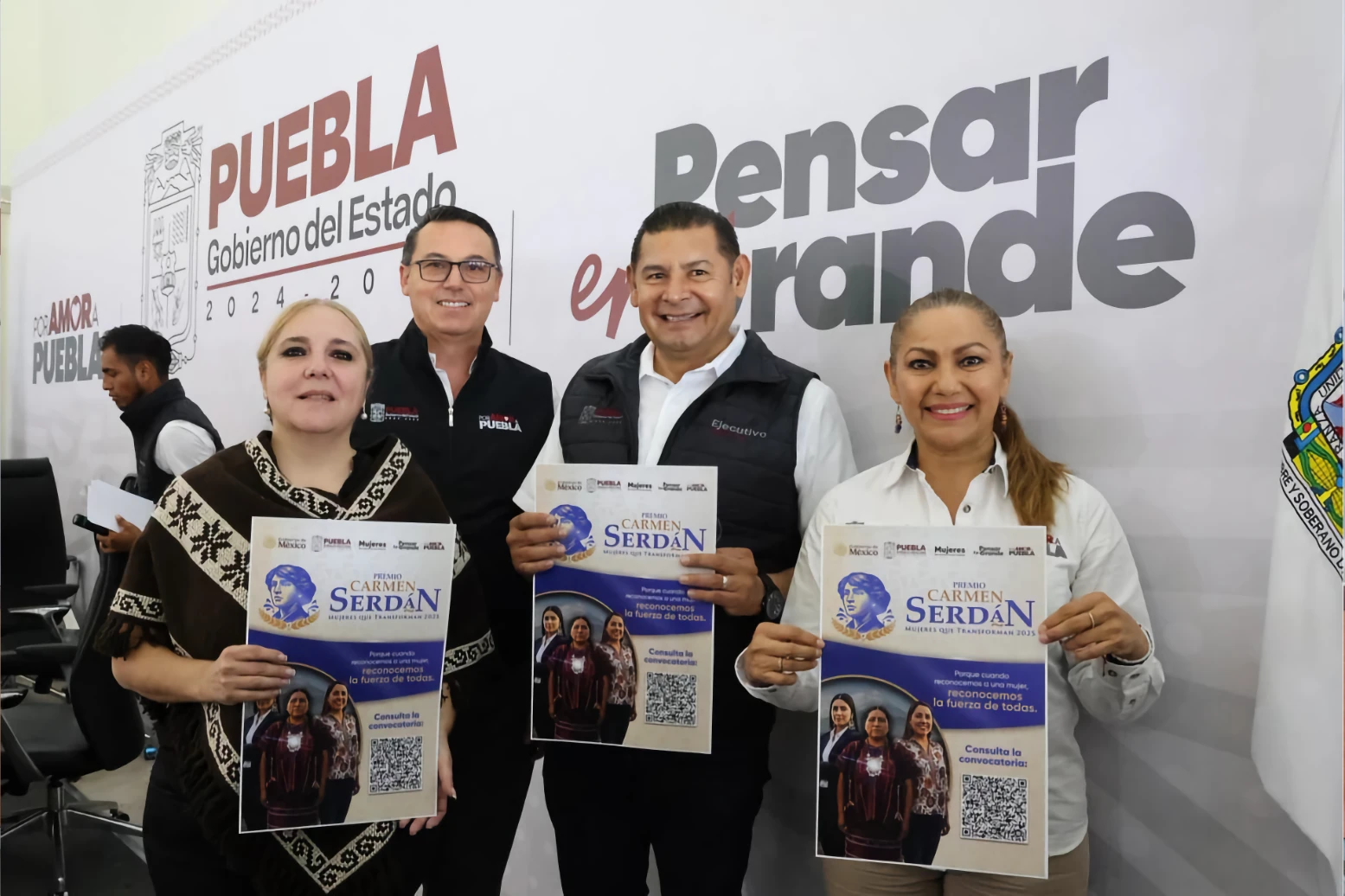 CIUDAD DE PUEBLA, Pue.- Con la finalidad de impulsar, reconocer y dar estímulos a las mujeres que son ejemplo en el estado, el gobernador de Puebla, Alejandro Armenta, consideró que el Premio “Carmen Serdán, Mujeres que Transforman 2025”, es emblemático, ya que visibiliza a quienes contribuyen a la construcción de un estado más igualitario, y que están en el centro del desarrollo con visión humanista y perspectiva de género.