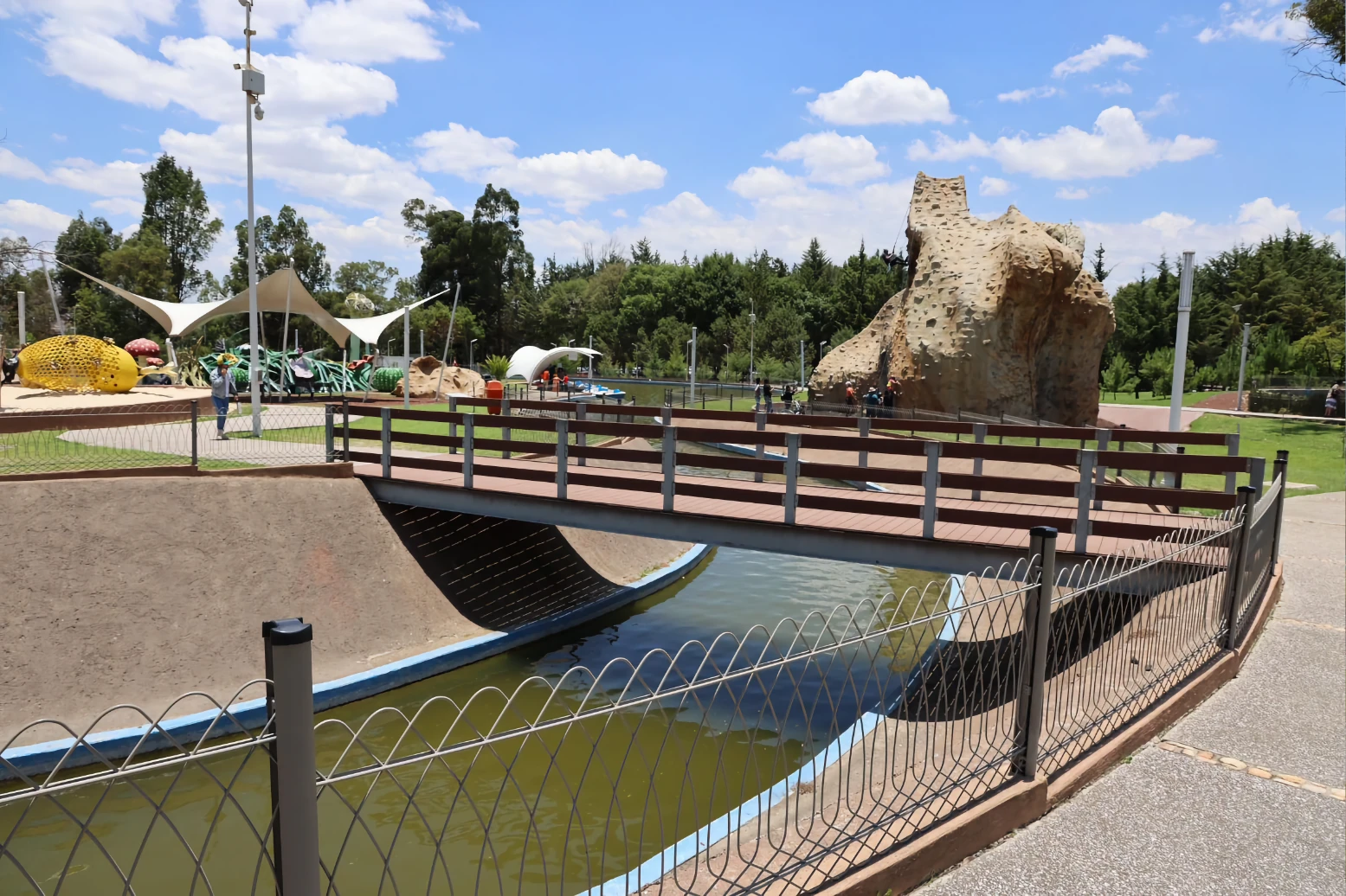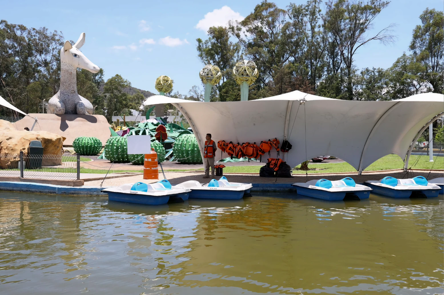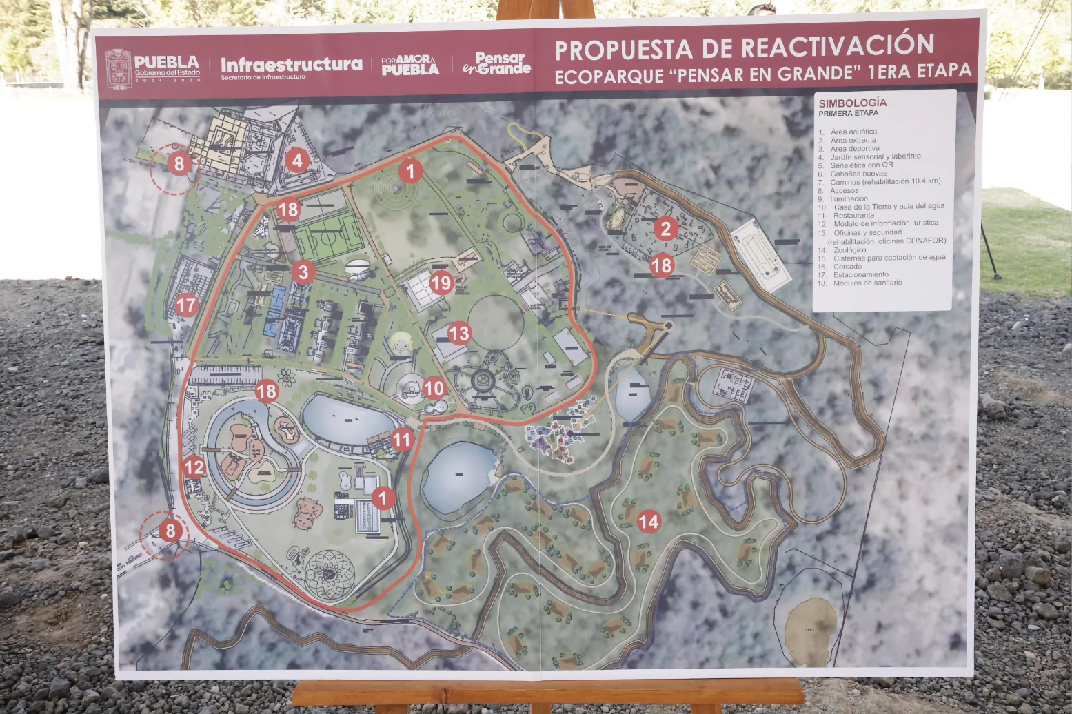 Entre los trabajos que se ejecutarán durante la primera etapa se encuentra: un área acuática con alberca semiolímpica, toboganes, baños para hombres y mujeres; una zona extrema donde se habilitarán tirolesas, circuito de bicicletas, gotcha y columpio extremo. Además, tendrá área deportiva con dos canchas de usos múltiples, juego de pelota, fútbol 7, dos canchas de voleibol de playa y gimnasios. Para la recreación de las y los visitantes, la palapa se ampliará para 300 personas. Asimismo, se construirá un circuito de cabalgata, y los lagos estarán conectados por un parque vertical.