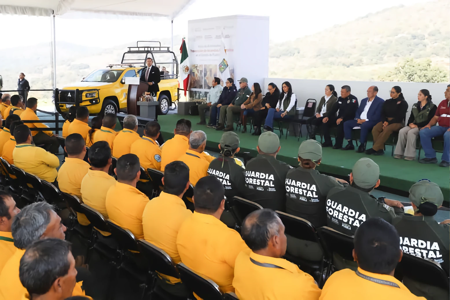AMOZOC, Pue.- Durante el inicio de trabajos de prevención de Incendios Forestales en el Estado de Puebla 2026, el gobernador Alejandro Armenta reafirmó su compromiso con el bienestar de las y los elementos de la Guardia y Policía Forestal, al entregar equipo de protección, nuevos vehículos y anunciar que el próximo año dos helicópteros se sumarán al combate de estos siniestros.