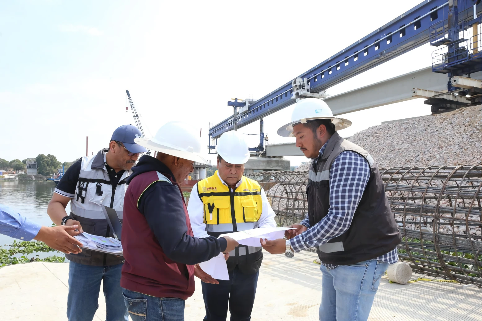 CIUDAD DE PUEBLA, Pue. – Con personal y maquinaria especializada, el Gobierno del Estado, a cargo del mandatario Alejandro Armenta, avanza en la colocación de trabes que conformarán la estructura del puente vehicular que sustituirá a La Panga y que conectará a 7 municipios de la región de Valsequillo.