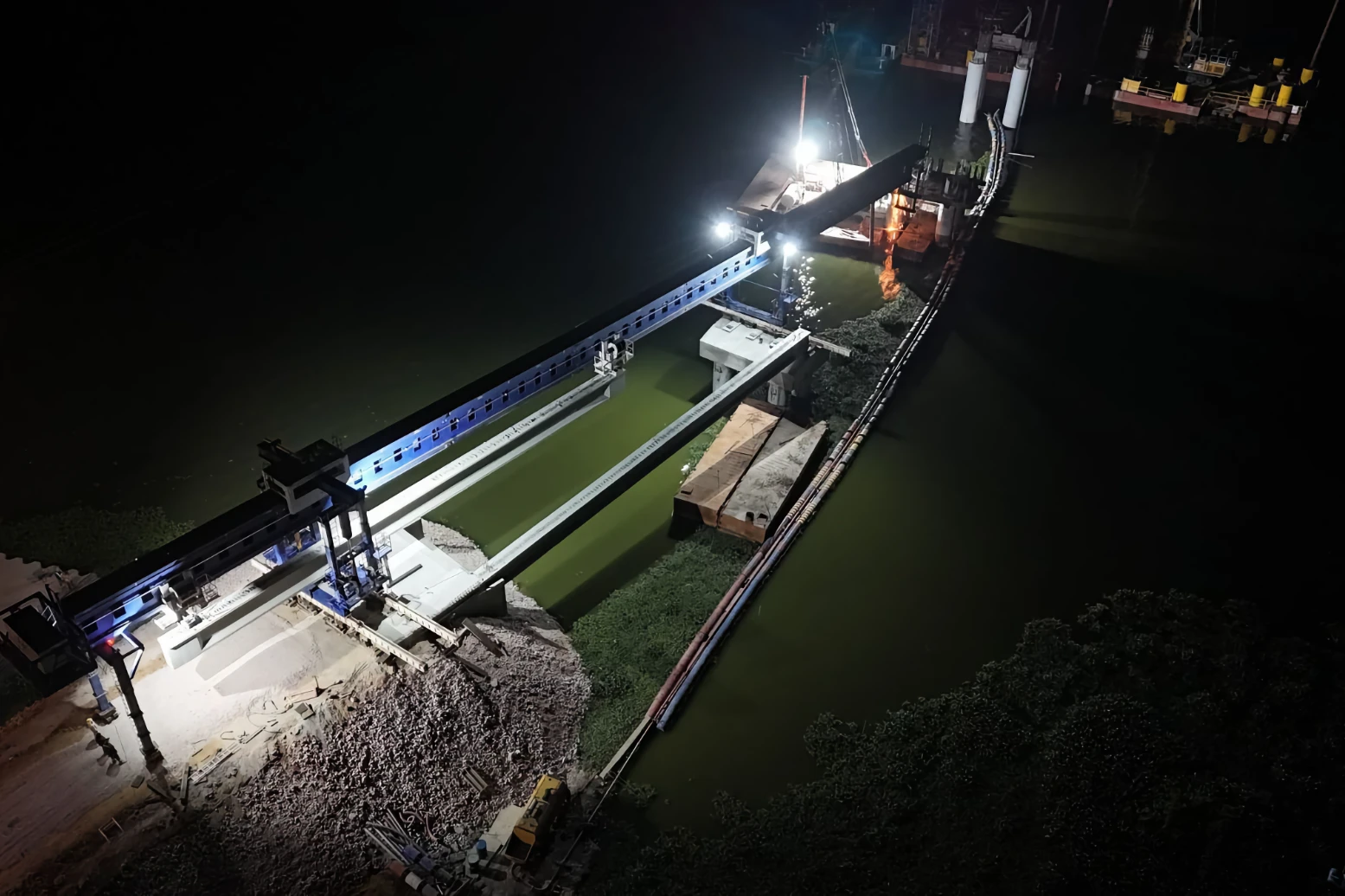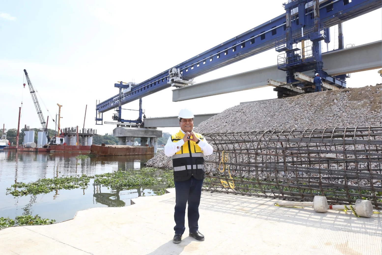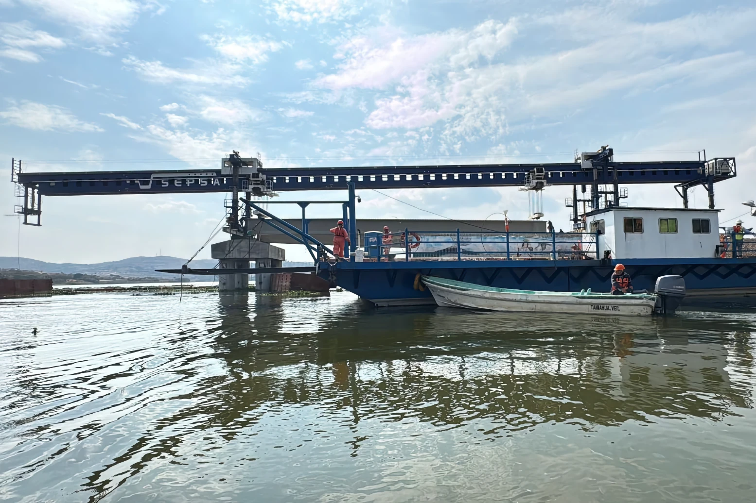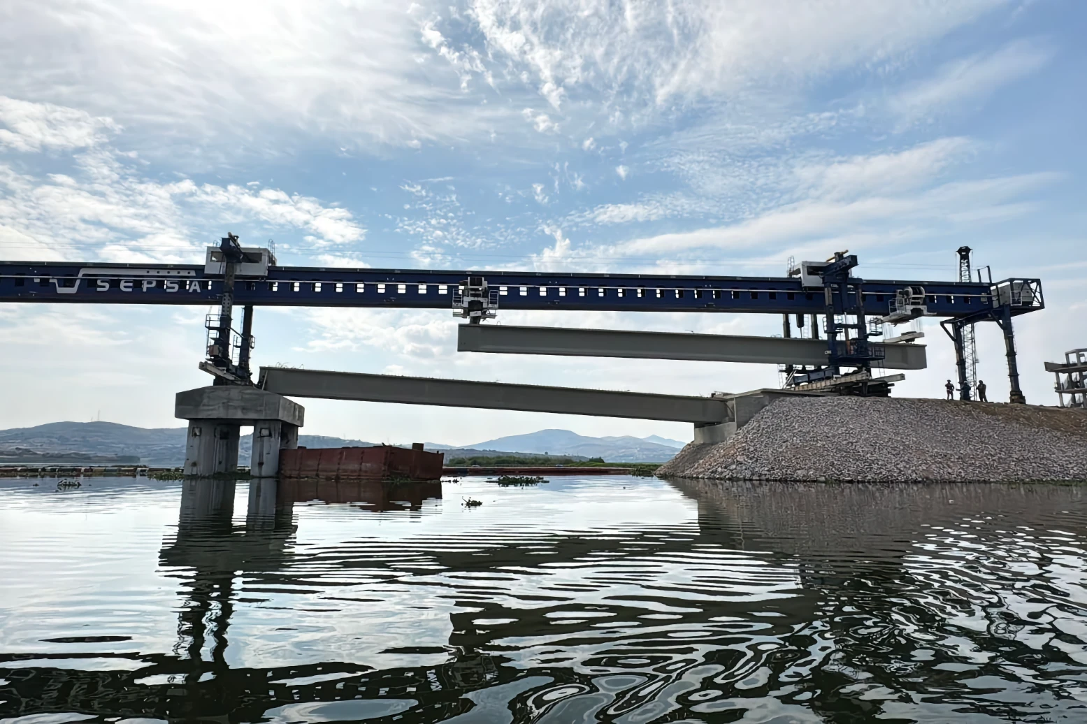 Con trabajos diurnos y nocturnos se colocaron trabes que conformarán la estructura de esta nueva vía de comunicación y que conectarán a San Baltazar Tetela y los Ángeles Tetela. La complejidad es relevante, ya que se realizan acciones en tierra y en el espejo de agua, aunado a que cada trabe tiene un peso superior a las 65 toneladas. Cabe destacar que por primera vez en la entidad se empleó la Máquina Lanzadora de Trabes, equipo que permite colocar los elementos de manera segura, eficiente y rápida.