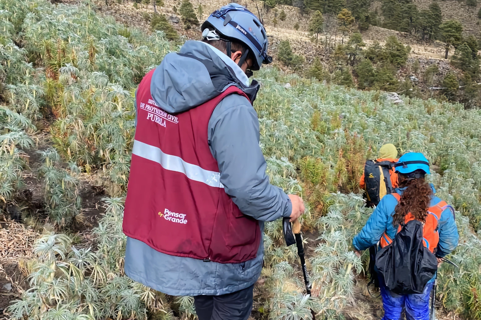 Ante la presunción inicial de personas extraviadas en una zona de difícil acceso, el personal de Protección Civil del Estado, bajo el mando del coronel Bernabé López Santos, realizó las labores de localización y ascenso con el apoyo de elementos de seguridad pública, guías y alpinistas voluntarios.