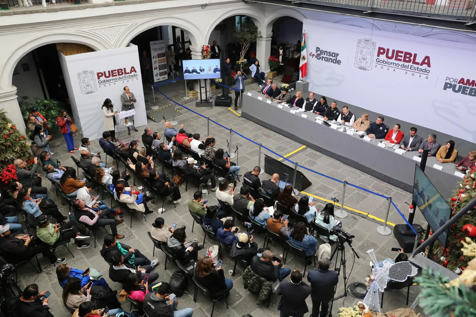 Respecto a las fiestas decembrinas, el titular de la Secretaría de Seguridad Ciudadana, coronel Félix Pallares Miranda, informó que, en coordinación con los gobiernos federal y estatal, se garantizó la seguridad de las familias poblanas con saldo blanco. Mencionó que, como parte de los operativos “Unidos por Ti” y “Guadalupe-Reyes”, se llevaron a cabo más de 4 mil acciones de proximidad, con presencia en 7 mil negocios y en mil 617 cajeros automáticos, con ello se fortaleció la cercanía con la ciudadanía.