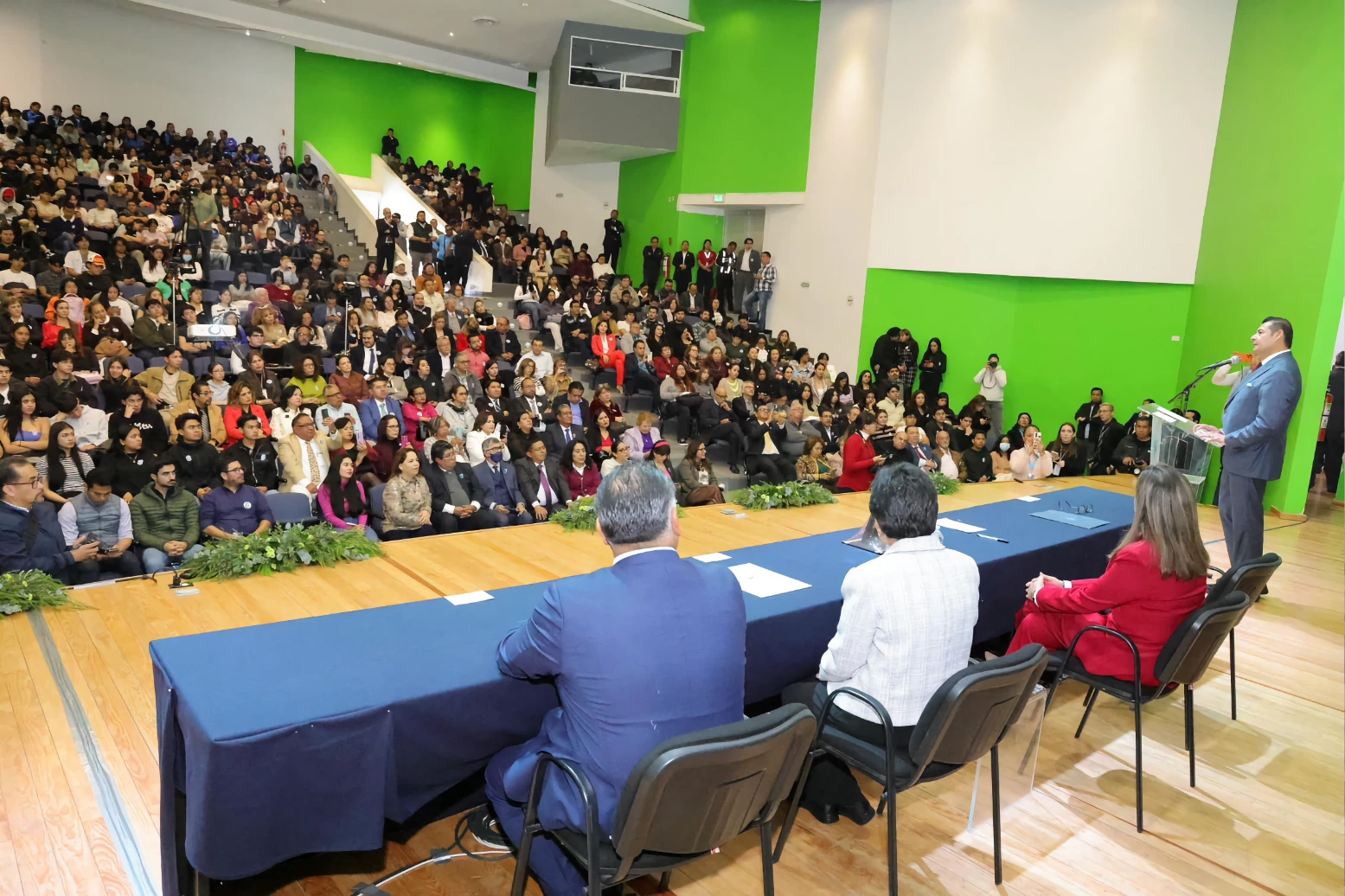 En su mensaje, el Ejecutivo estatal subrayó que hombres y mujeres pueden ser lo que decidan ser, al señalar como ejemplo a la primera presidenta de México, Claudia Sheinbaum, y convocó a las y los estudiantes a creer en su formación universitaria, ejercerla con sensibilidad social y asumir el servicio público como una vía real de transformación.