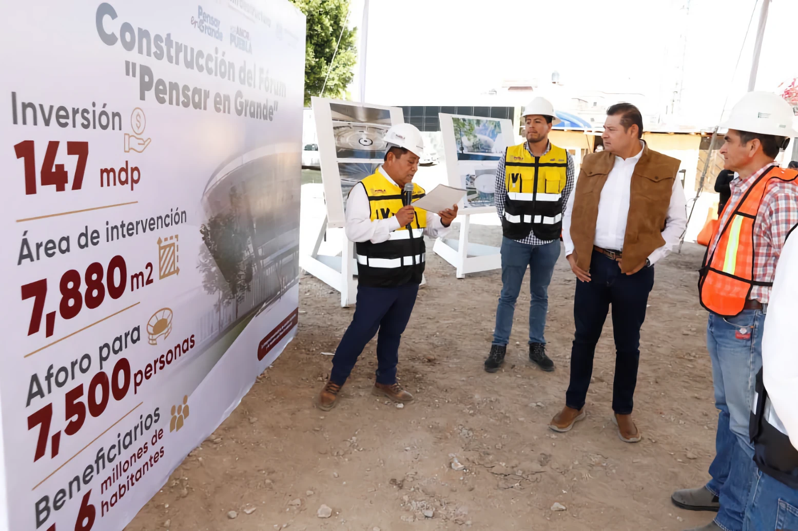 CIUDAD DE PUEBLA, Pue.- Para garantizar el cumplimiento y avance de los proyectos estratégicos que detonan el desarrollo de Puebla, el gobernador Alejandro Armenta constató el progreso en la construcción del Forum Pensar en Grande.