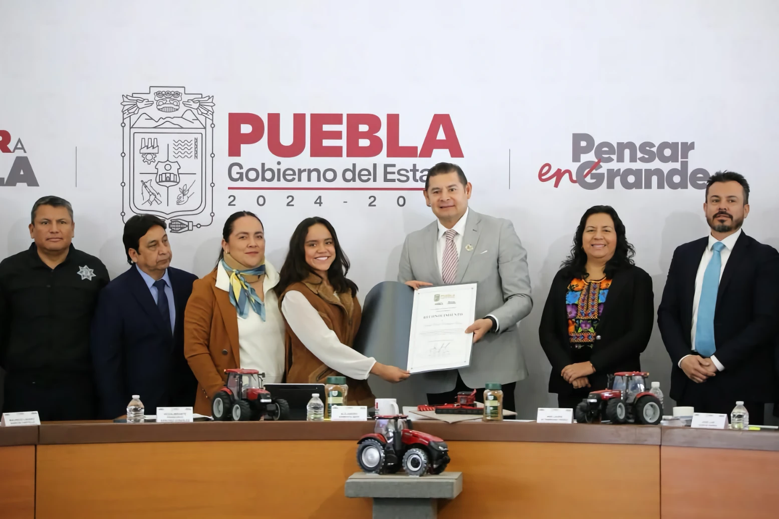 En este contexto, entregó un reconocimiento a Fátima Rodríguez Rosas, quien en el pasado mes de octubre de 2025 obtuvo el segundo lugar en el Campeonato Nacional de Danza, y al pintor poblano Jorge Sergio González Jiménez, por su destacada trayectoria.