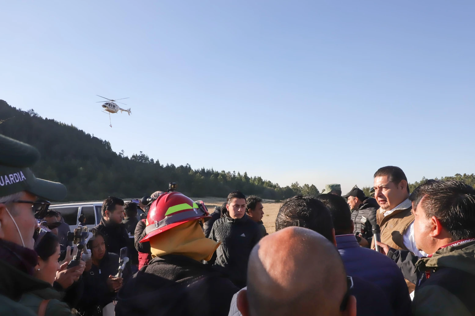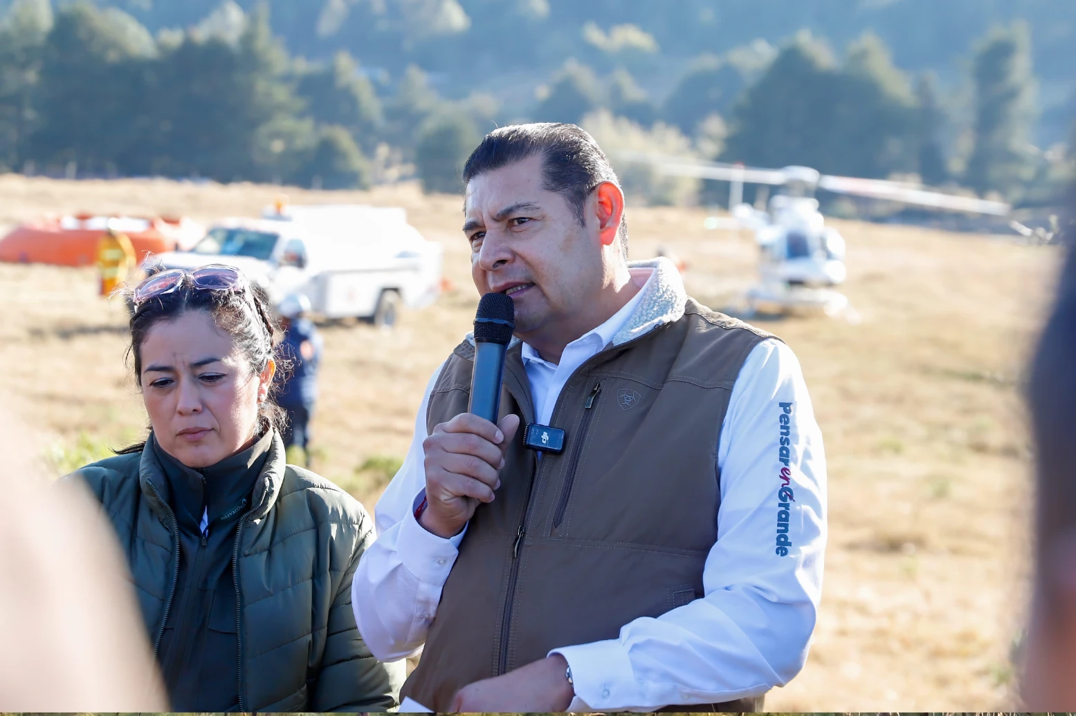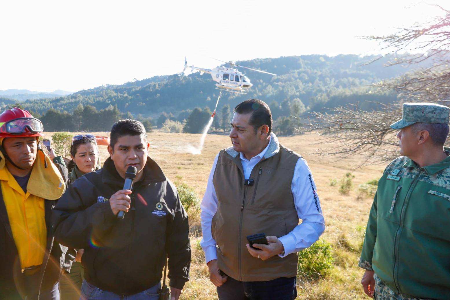 VICENTE GUERRERO, PUE.- Durante las primeras horas de este miércoles, el gobernador de Puebla, Alejandro Armenta supervisó directamente las acciones de combate y control del incendio forestal en la Sierra Negra, al sur del estado.