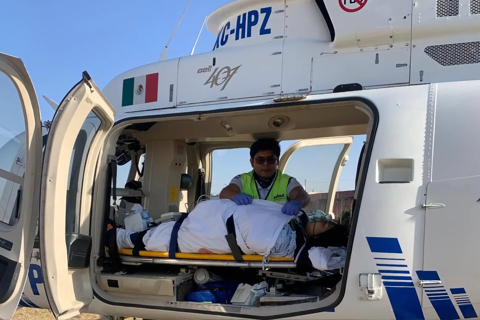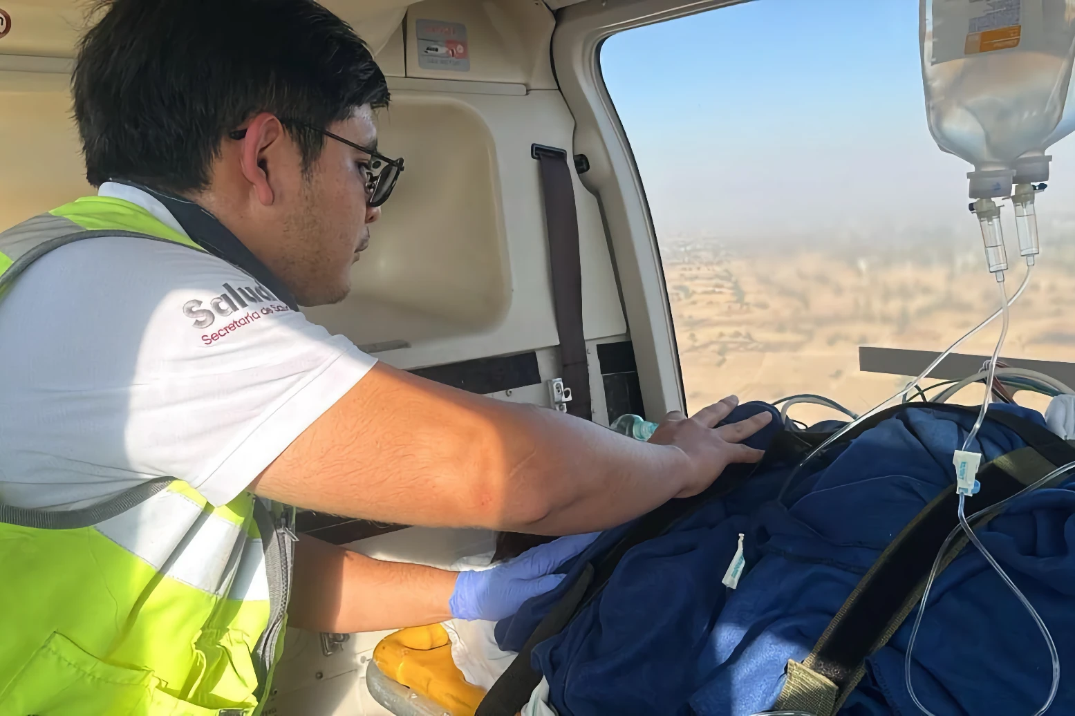 El operativo fue coordinado por el Sistema de Urgencias Médicas Avanzadas (SUMA), a través de una ambulancia aérea, que permitió llegar al nosocomio en solo 15 minutos, tiempo durante el cual permaneció bajo vigilancia, se logró su estabilidad y se disminuyeron los riesgos.