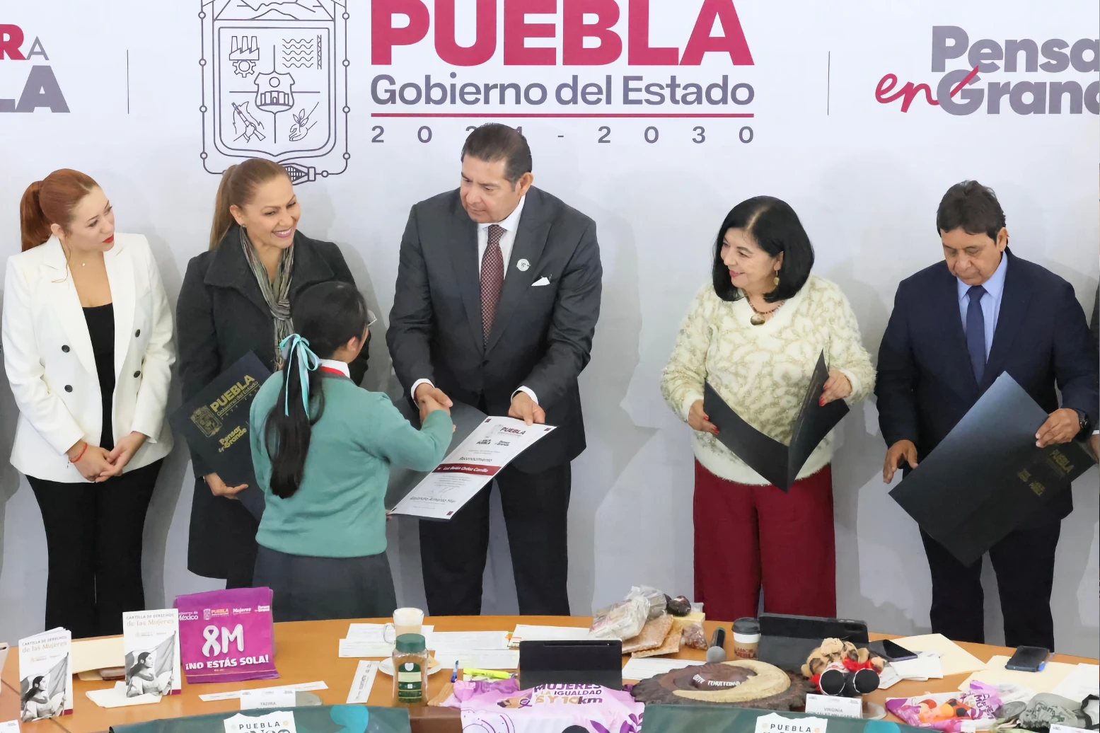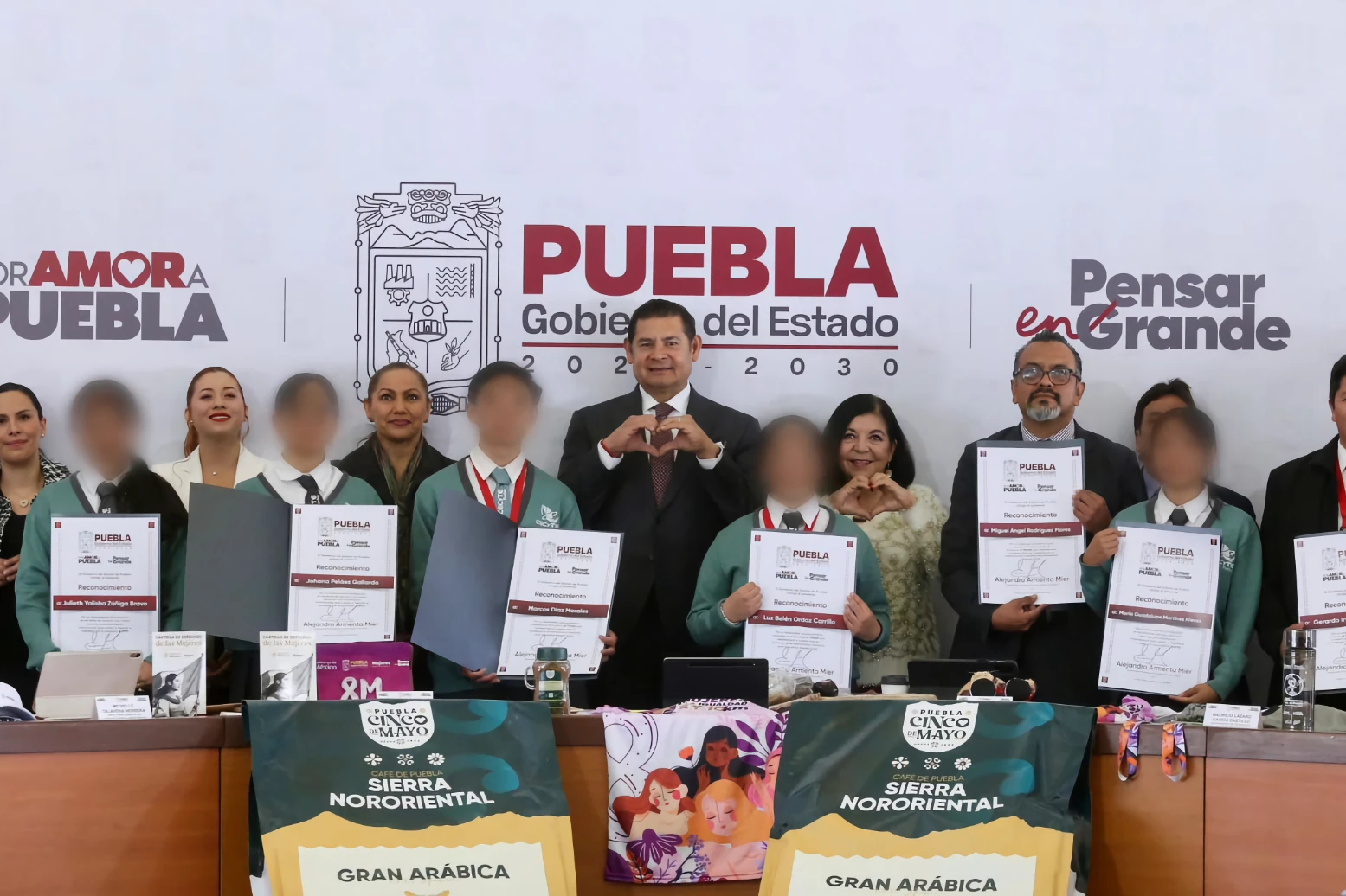 CIUDAD DE PUEBLA, Pue.- Al reconocer a estudiantes del Colegio de Estudios Científicos y Tecnológicos del Estado de Puebla (CECyTE), de los planteles de Tehuitzingo y Chignahuapan, el gobernador Alejandro Armenta Mier resaltó que en todos los ámbitos hay talento en Puebla, por eso es tierra de campeonas y campeones.
