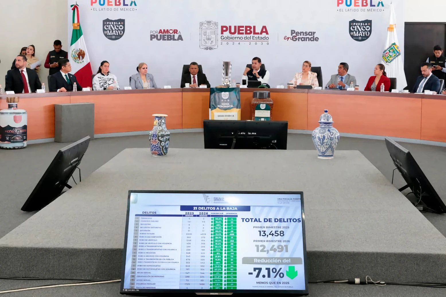 CIUDAD DE PUEBLA, Pue.- Durante el primer bimestre de 2026, la incidencia delictiva registró una disminución del siete por ciento en comparación con el mismo periodo de 2025, lo que se traduce en 21 delitos a la baja. «Tenemos la convicción plena de que nuestra responsabilidad coadyuvará con la seguridad, procurará la justicia y contribuirá al desarrollo de la riqueza comunitaria», afirmó el gobernador de Puebla, Alejandro Armenta Mier.