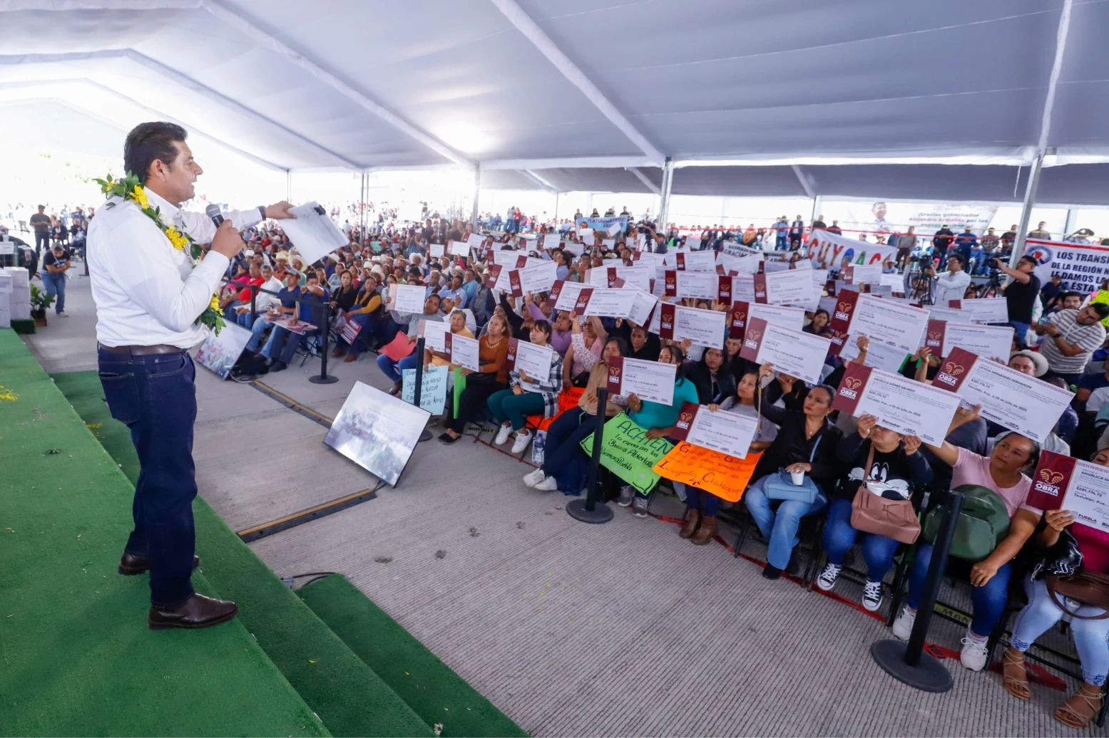 MODERADOR Donde en estos momentos está llegando el gobernador del estado, Alejandro Armenta, también acompañado por el director ...